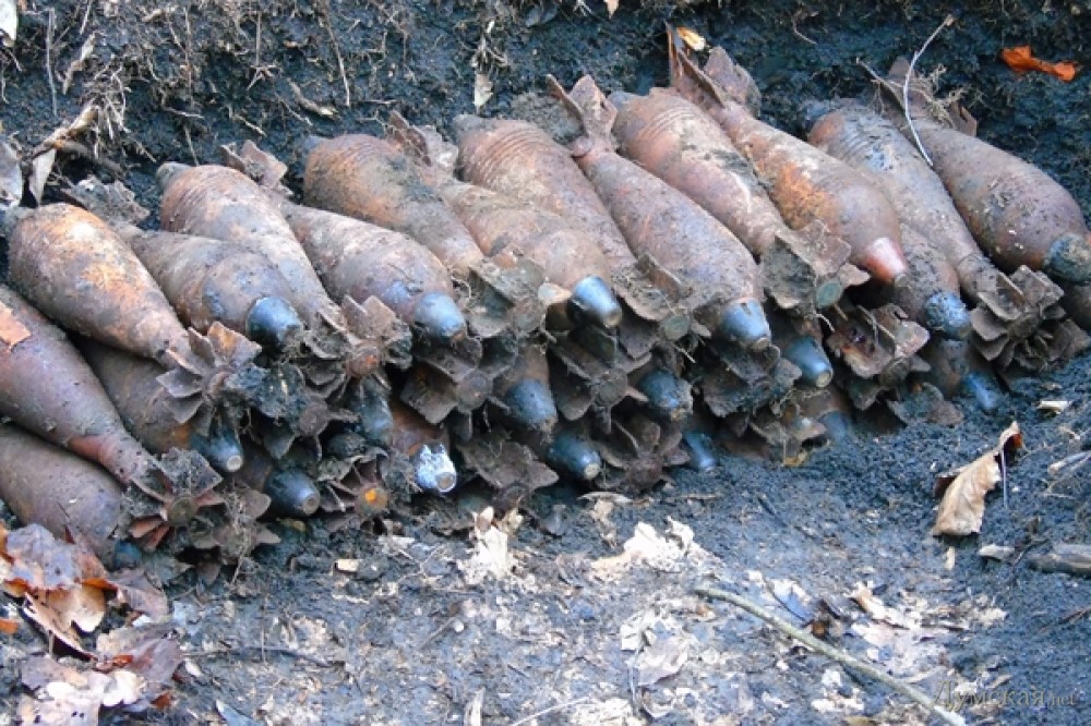 Как сообщает пресс-служба Нацгвардии, тайник с 82-миллиметровыми боеприпасами времен приднестровского конфликта нашли при оборудовании фортификационных укреплений в пограничной лесополосе в Котовском районе Одесской области.