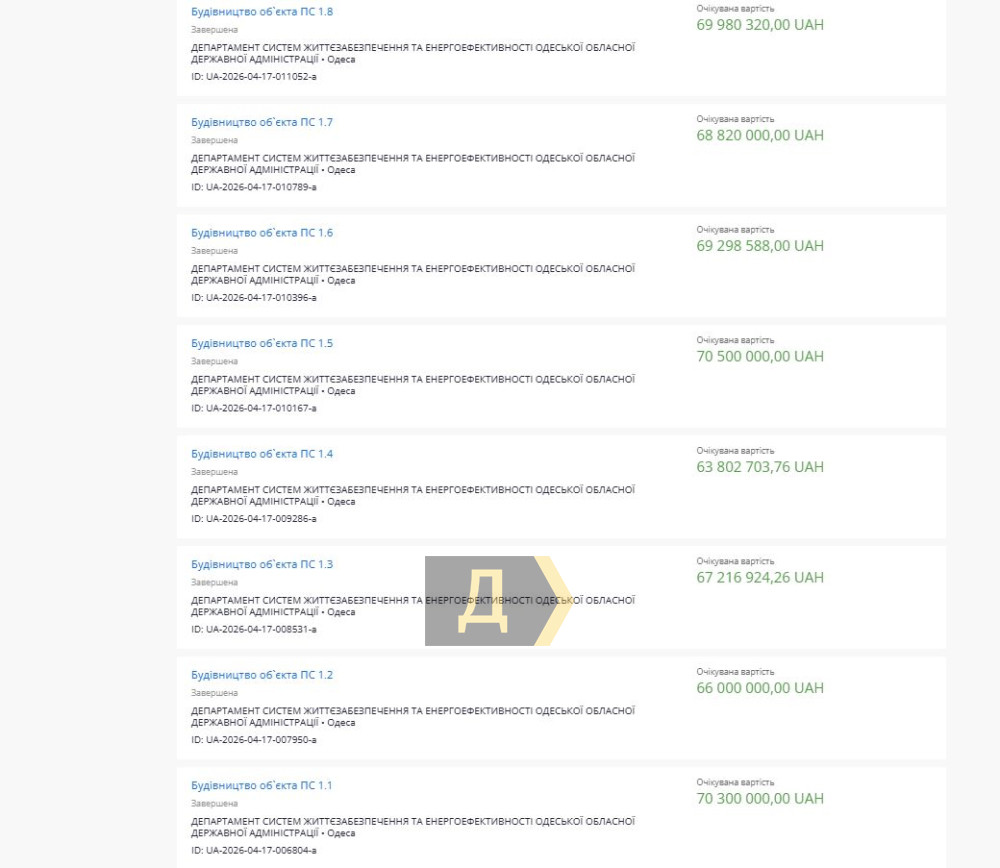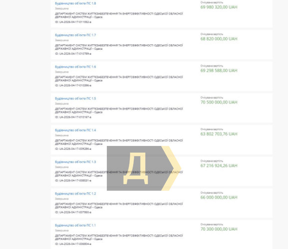 В Одесской области засекретили строительство восьми объектов: на них потратят 550 миллионовСерию закупок на сумму почти 550 млн гривен провел департамент систем жизнеобеспечения и энергоэффективности Одесской ОВА. Как передает корреспондент «Думской», объекты, как и подрядчики, засекречены. Все восемь тендеров с идентичным названием «Строительство объекта ПС» (с индексами от 1.1 до 1.8) опубликованы 17 апреля. Технические задания, адреса и проектная документация в системе ProZorro не представлены. Львиную долю суммы выделяют из резервного фонда госбюджета. Исполнитель работ уже известен, но не указан. Известно, что это компания (или компании), которая официально числится в реестрах как поставщик оборонной продукции, услуг. Закупка проводится в рамках экспериментального проекта по защите критической инфраструктуры. В соответствии с законодательством, информация станет открытой в системе ProZorro только через 90 дней после отмены военного положения. СМЕРТЬ РОССИЙСКИМ ОККУПАНТАМ! Заметили ошибку? Выделяйте слова с ошибкой и нажимайте control-enter |