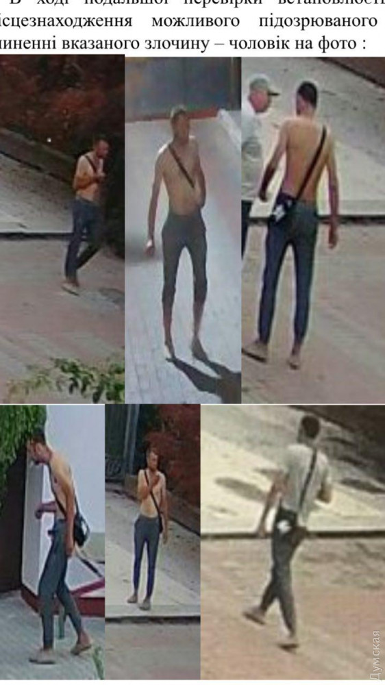 Киевский отдел полиции Одессы разыскивает подозреваемого в изнасиловании и убийстве пожилой женщины, которое произошло в минувшую пятницу на 16-й станции Большого Фонтана. Как сообщили «Думской» правоохранители, его зафиксировали камеры наружного наблюдения. Это мужчина на вид 30 лет, рост 185-190, худощавого телосложения. Был одет в серые брюки, серую футболку. На плече — сумка с эмблемой Аdidas. Любую информацию об этом человеке просят сообщить на линию «102» либо по телефону 0487669034. СМЕРТЬ РОСІЙСЬКИМ ОКУПАНТАМ! Помітили помилку? Виділяйте слова з помилкою та натискайте control-enter Новини по цій темі: 29 липня 2025: В Усатово Одеської області сталася перестрілка: поліція працює на місці (відео, оновлено) 28 липня 2025: П'яний на "Ягуарі" або гіпертонік? Звільнений топ-посадовець одеської поліції хоче повернутися на службу 19 червня 2025: Дівчинку, яку шукали сотні одеситів, знайшли вбитою: поліція працює з чоловіком, ймовірно причетним до загибелі 27 травня 2025: Увели гектар в університету: на Одещині засудили земельних аферистів, але без посадки і Хвоста |