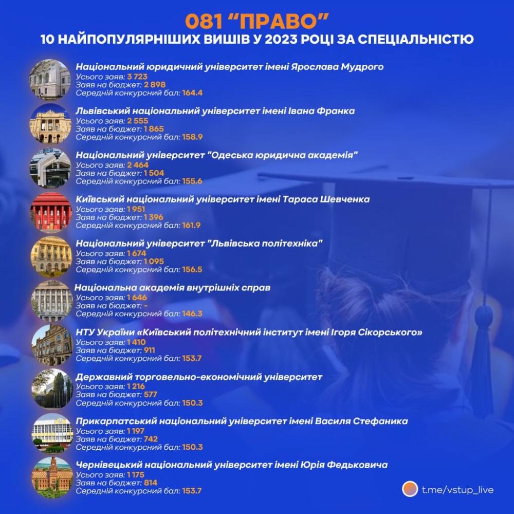 Одеська юридична академія вкотре увійшла до ТОП-3 найпопулярніших університетів України (на правах реклами)Національний університет «Одеська юридична академія» вкотре увійшов у ТОП-3 найпопулярніших університетів України. Це єдиний навчальний заклад, який представив Одесу в рейтингу «081 ПРАВО: 10 найпопулярніших вишів» від Вступ 2024 Live. Рейтинг базується на кількості поданих заяв на бакалаврат у 2023 році. За даними рейтингу, Одеська юридична академія отримала такі показники: - загальна кількість поданих заяв: 2 464; - кількість заяв на бюджетні місця: 1 504; - середній конкурсний бал абітурієнтів: 155,6. «Успіх НУ «ОЮА» свідчить про стабільно високий інтерес та перспективність юридичної освіти в південному регіоні, а також конкурентоспроможність випускників університету на ринку праці», — розповіли у виші. Помітили помилку? Виділяйте слова з помилкою та натискайте control-enter |