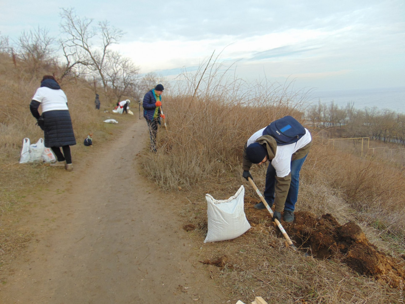 Одесская зима: на западное Рождество экоактивисты сажали павловнии на склонах вдоль моря