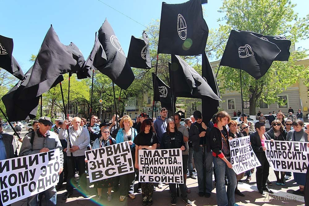 «В Одессе уже давно была взрывоопасная обстановка и привозить футбольных фанатов, которые радикально вели себя на Киевском майдане, было с нашей точки зрения явной провокацией – уверен главный анархист города. — С другой стороны были привезены боевики и со стороны Куликового поля. И мы требуем, чтобы были допрошены все без исключения кандидаты в меры города, с целью установления не причастны ли их предвыборные штабы в организации одесских событий второго мая. Наше предположение: что организаторами «Марша Единства» были люди из предвыборного штаба Эдуарда Гурвица и партии Удар», – подчеркнул Вячеслав Азаров.