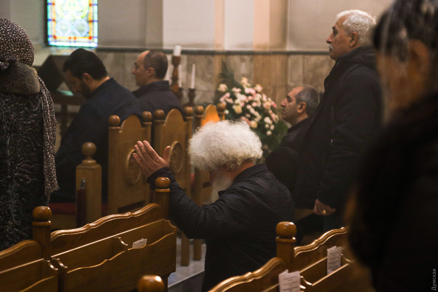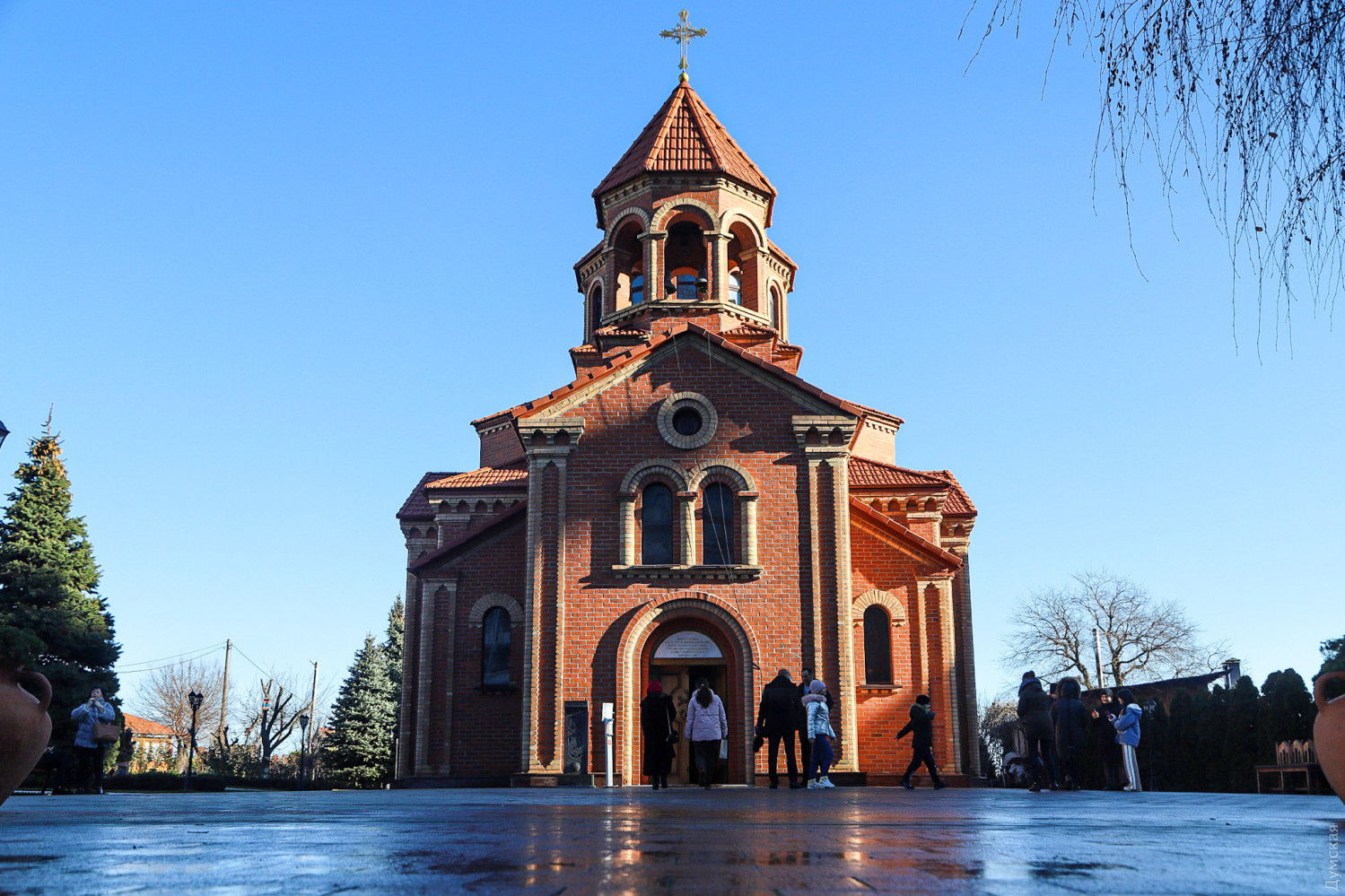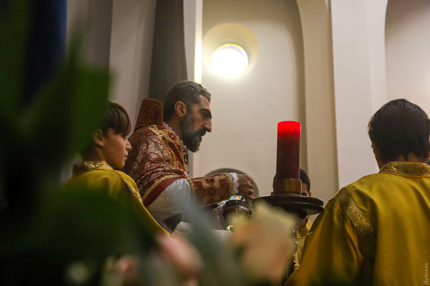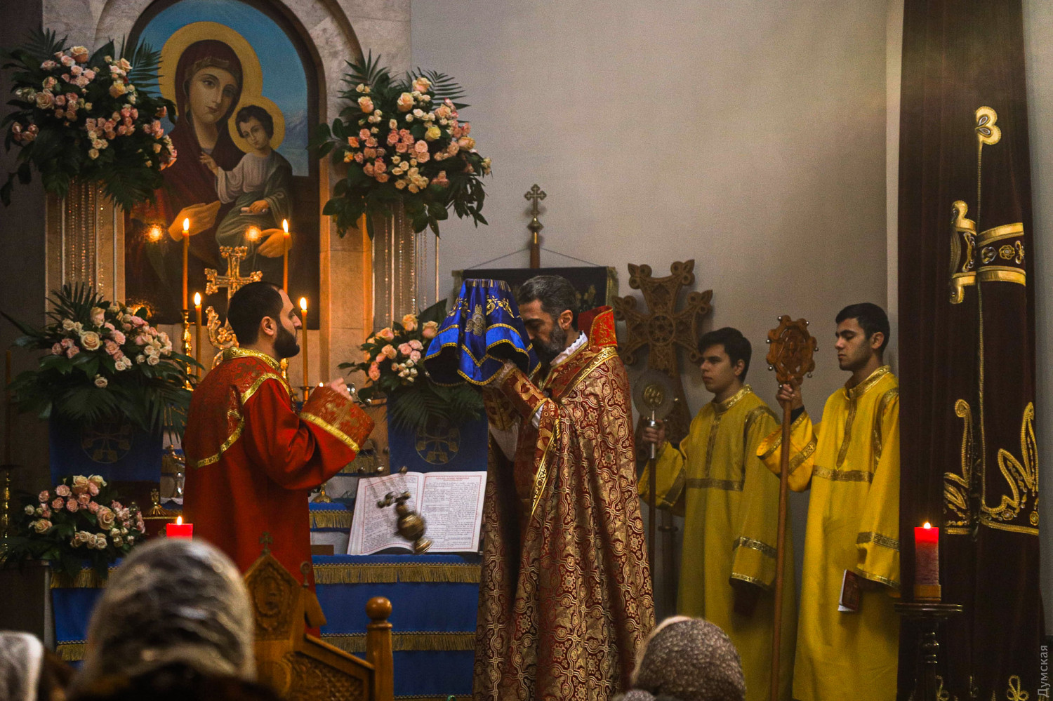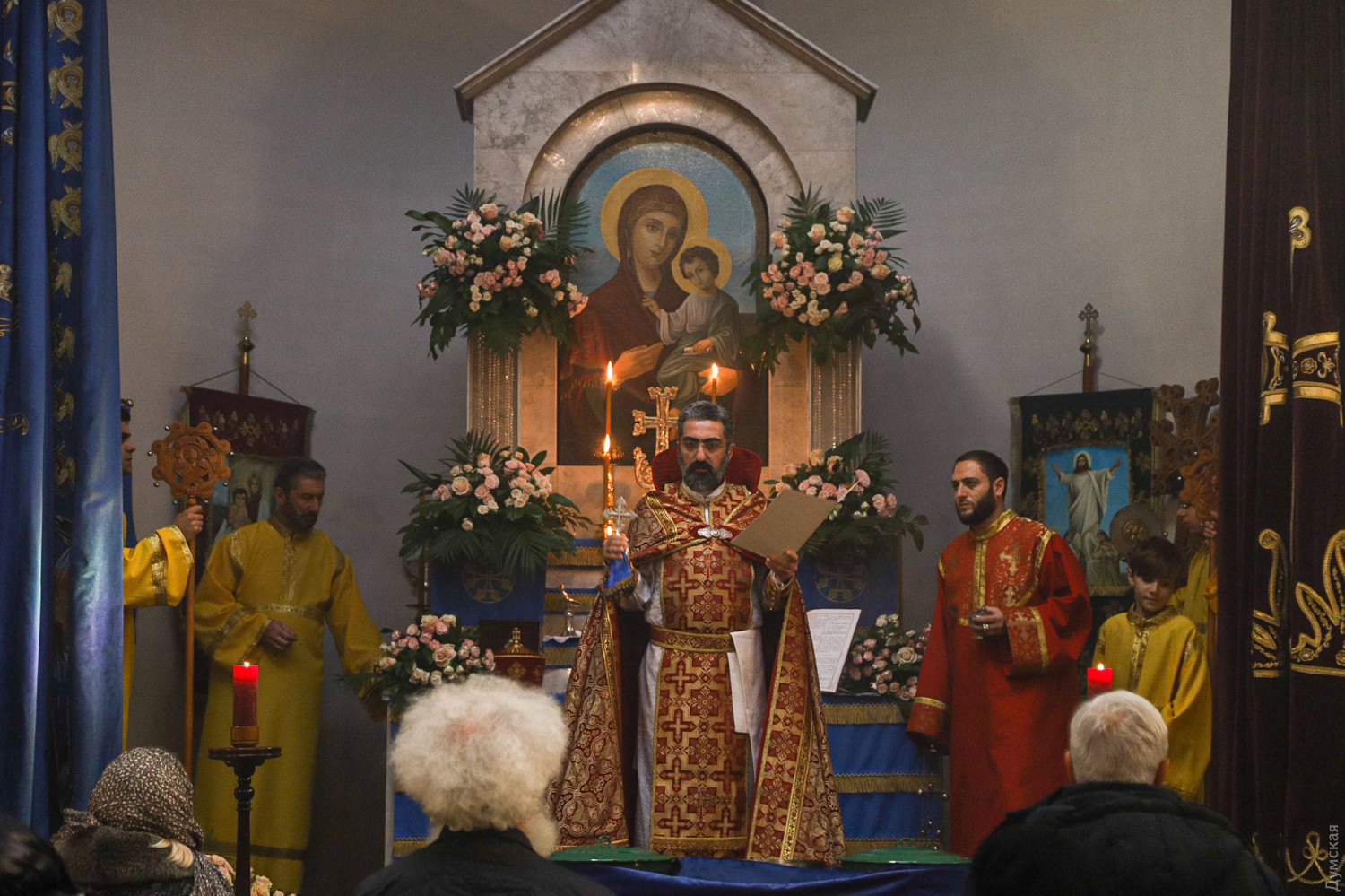 Рождество Христово отмечают сегодня, на день раньше православных, греко-католиков и части протестантов, верующие Армянской апостольской церкви. Корреспондент «Думской» побывал на рождественской литургии в одесском армянском храме Святого Григория Просветителя, что на Гагаринском плато. Служба началась примерно в 11 часов. Все, что происходит в храме, транслируется через громкоговорители в небольшой сквер, примыкающий к церкви. Ближе полудню небольшое здание было полностью заполнено. Многие пришли большими семьями, с детьми.
