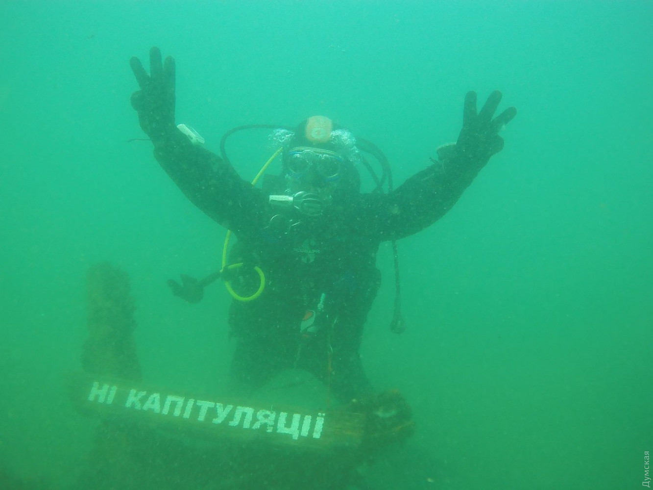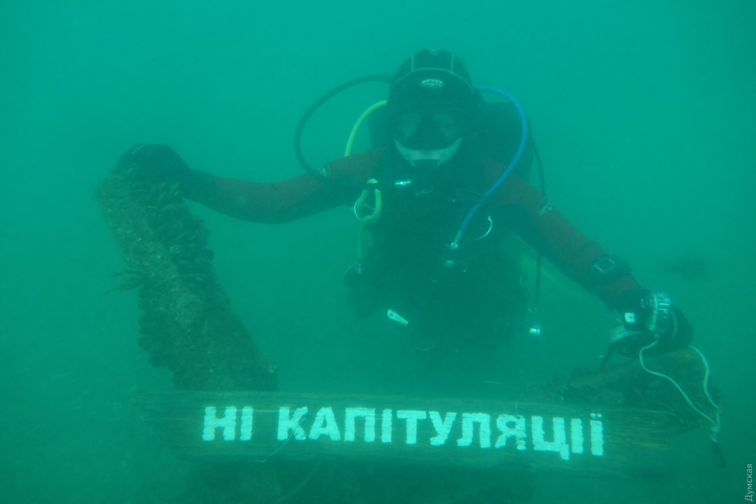 Они установили на дне табличку с надписью «Ні капітуляції».