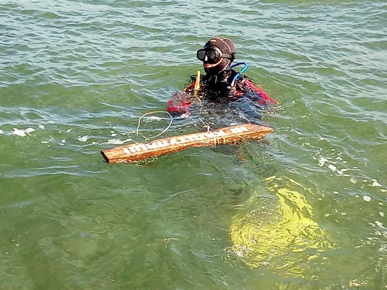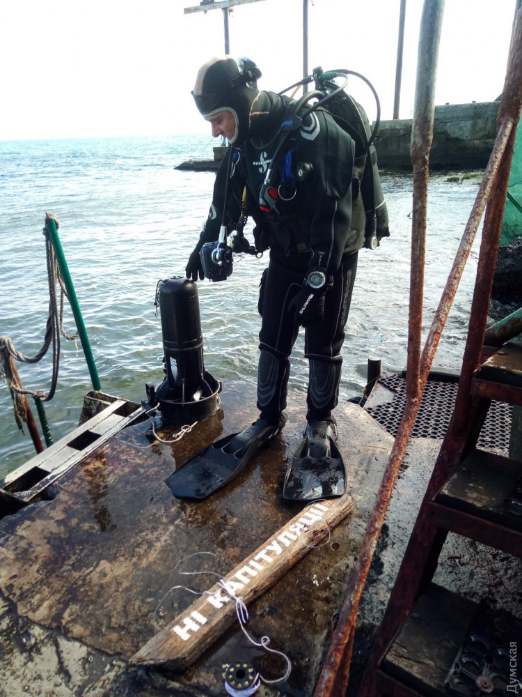 Новый экспонат, посвященный протесту против так называемой «формулы Штайнмайера», добавили сегодня в подводный музей на дне Одесского залива дайверы.