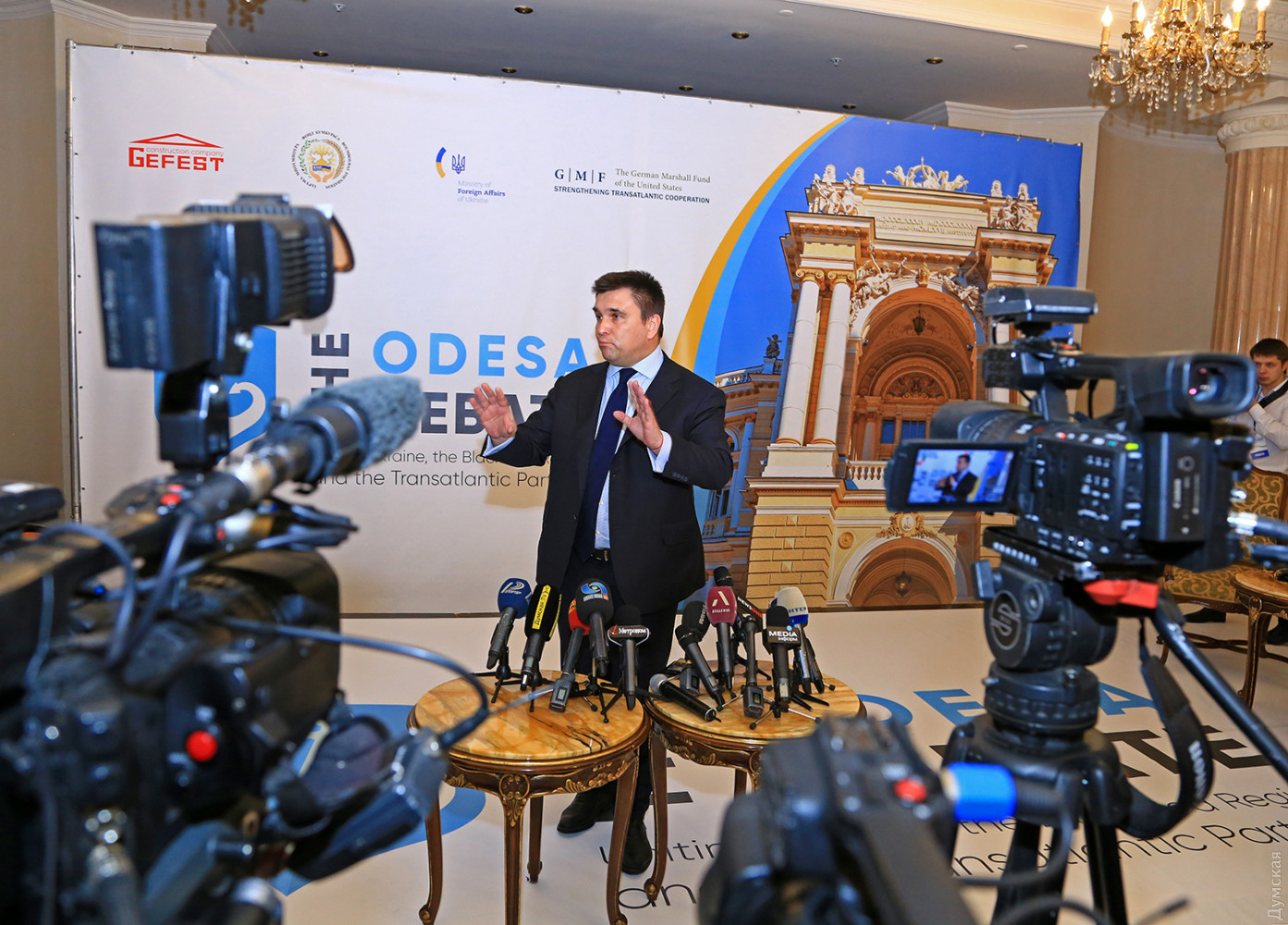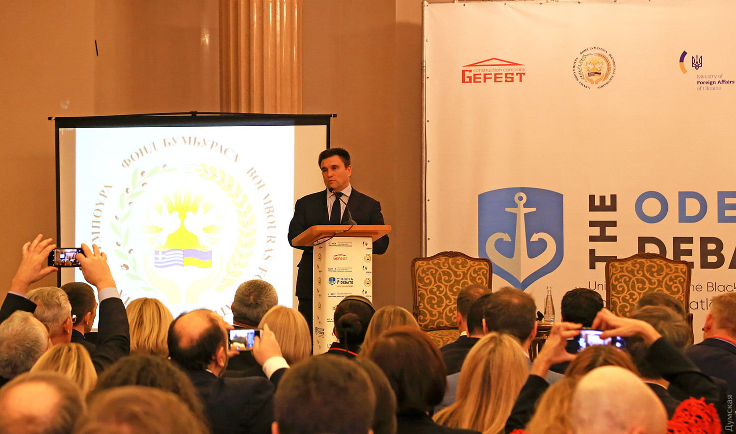 Отпор агрессивным действиям России, проблемы стран черноморского региона и свобода судоходства в Керченском проливе — эти вопросы обсуждались сегодня в одесском отеле «Бристоль» на открывшейся конференции «Одесские дебаты». Большая международная конференция собрала министров и дипломатов стран всего черноморского бассейна, а также США. С украинской стороны присутствовал министр иностранных дел Павел Климкин и командующий Военно-морскими силами адмирал Игорь Воронченко. В начале дебатов с приветственным словом выступил известный бизнесмен и глава благотворительной организации «Фонд Бумбураса» Пантелеймон Бумбурас. Он отметил, что формат этой конференции должен способствовать выработке общей концепции стран региона по недопущению агрессивных шагов России и восстановлению свободы судоходства в Керченском проливе. «Украина больше не является страной, которой была пять лет назад. Она все больше приближается к своему курсу в отношении Европы и ее трансатлантических партнеров. Наши достижения заслуживают высокой оценки, и мы продвигаемся вперед благодаря всеобщей поддержке», — отметил Пантелеймон Бумбурас. Министр иностранных дел Павел Климкин начал дискуссию издалека. Украинский дипломат напомнил, что в этом году исполняется круглая дата с момента падения берлинской стены. Тридцать лет назад страны Восточной Европы вырвались из под ига советского режима и начали путь интеграции в Европу. По его словам, этот год должен стать переломным и для Украины. Заместитель министра иностранных дел Грузии Вахтанг Махароблишвили рассказал о том, что с 1 марта для украинцев и грузин значительно упростятся правила пересечения границы обеих стран. Отныне в Грузию и в Украину можно будет попасть по обычной ID карте, заменяющей внутренний паспорт. Также говорили о том, что между спецслужбами наших стран идет активный обмен разведывательными данными. Бывший министр иностранных дел Болгарии Даниел Митов поделился историей отношений его страны с РФ: в конце XIX века тогдашняя царская Россия оказала помощь Болгарии, освободив ее от турков, и около ста лет Болгария находилась в зависимости от советского режима. По словам Митова, Болгария приложила немалые усилия, чтобы вырваться от опеки и вступить в Евросоюз. Бывший Министр дал понять, что сегодняшние страны — члены НАТО черноморского бассейна приветствуют быстрейшее вступление в Североатлантический альянс новых стран — Украины и Грузии. Участники «Одесских дебатов» отметили, что три страны — Украина, Грузия и Молдова имеют сейчас территориальные проблемы, связанные с российской экспансией, поэтому им надо объединить усилия для отпора агрессору. Заместитель помощника госсекретаря США по странам Восточной Европы и Кавказа Джордж Кент заявил, что правительство его страны ни на секунду не сомневалось в правильности своей позиции относительно Крыма. «Мы ни на секунду не сомневались в том, что Крым украинский. К большому сожалению, в эти дни 2014 года мы не смогли ничего противопоставить российской агрессии кроме дипломатических усилий. Мы твердо стоим на нашей позиции и не дадим Украину в обиду», — отметил американский дипломат. Все выступающие ратовали за выработку так называемой концепции отпора российской агрессии, которая должна стать программой действий по возвращени