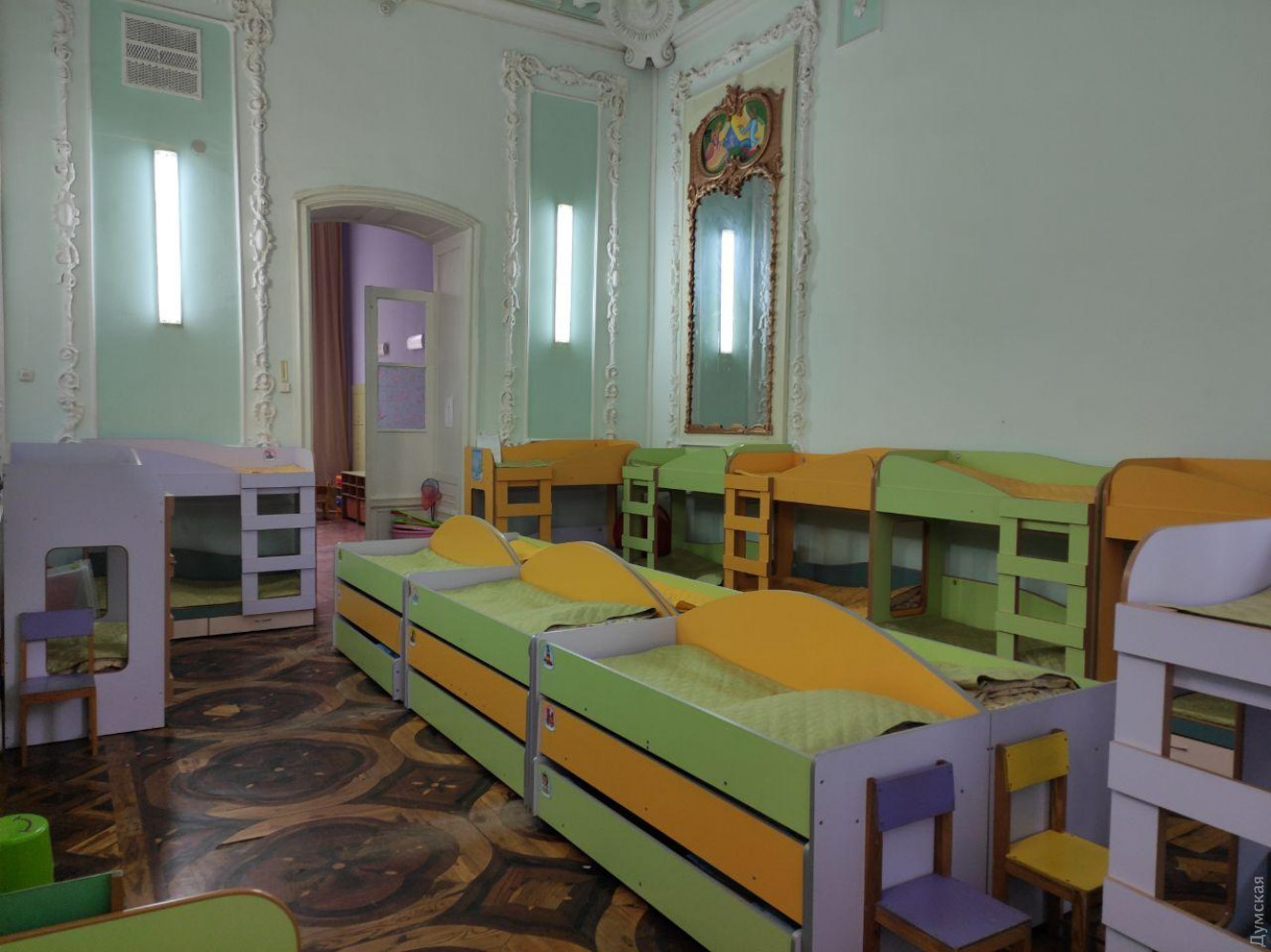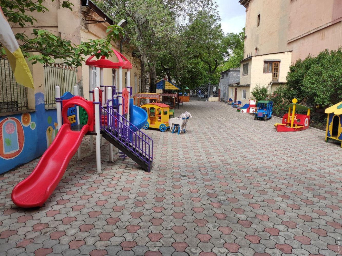 Одесские детсады готовятся к открытию: мягкие игрушки, ковры и многоразовые полотенца — под запретомКорреспондент «Думской» побывала в одесском детсаду №50 на улице Гоголя, чтобы собственными глазами увидеть, как дошкольные учреждения города готовятся к открытию после «карантинного» простоя. Напомним, это должно произойти уже 1 июня. У входа в здание садика мне измерили температуру (дистанционно, разумеется) и попросили продезинфицировать руки. Дальше – бахилы, и вот можно свободно ходить по старинному дворцу. Это сейчас тут детский сад, а когда-то был особняк князя Манук-бея. В начале XX века в доме располагалось консульство первой Демократической республики Грузия. Но это совсем другая история. Принимать детей в детсад будут только на улице, рассказывают сотрудники. Здесь их осмотрят, измерят, как и мне, температуру. Только после этого разрешат войти. А чтобы в ожидании всех этих процедур не толпились у входа, сделали цветную разметку для соблюдения дистанции. Ясли-сад на Гоголя – для детей с особенностями развития зрения, слуха и речи. Таким малышам особенно важны прикосновения, которые карантин как раз и ограничивает. Психолог Елена Почетова нас успокаивает: «Чтобы организовать игру, совсем не обязательно браться за руки всем детям. Есть много других способов интересно проводить время». Самоизоляция, в которой находились и дети, и родители – это стресс для всех, добавляет Елена. Поэтому первое время воспитанников этого, да и других детских садов ждет адаптация. Главное, встречать малышей с улыбкой, считает психолог. Ограничение тактильных контактов — не единственное изменение, которое ждет и воспитанников, и воспитателей. Все мягкие игрушки, ковры и даже матерчатые полотенца убраны до лучших времен, рассказывает воспитательница Наталья Сучевану. «Каждые два часа мы будем проводить дезинфекцию, — говорит педагог. — А занятия у нас все на свежем воздухе». С внутренним двором малышам 50-го садика повезло: он просторный. У каждой группы – своя беседка. Не будет проблем и с наполняемостью. В одной группе до карантина было около 15 человек. С 1 июня в садик придут дети официально трудоустроенных родителей. Они уже присылают директору справки с мест работы. Однако ни в одной группе не будет больше десяти малышей. Это еще одно условие работы во время «мягкого» карантина. В дошкольном учреждении работают 42 человека. И только четверо относятся к группе риска по возрасту (60+лет). Все они технические работники, сообщила «Думской» директор Наталья Дехтяр. Новых сотрудников, пусть и на время, решили не брать. Просто перераспределят обязанности. Сотрудники уверяют, что ждут детей. «Садик – это не только место, где дети будут находится. Здесь они получают воспитание и развитие. А в нашем случае еще и коррекционную работу, и даже если мы будем выполнять все противоэпидемические требования, это не значит, что мы забудем о воспитании, развитии и коррекции», — говорит Наталья Дехтяр. Продукты питания и средства гигиены в сад должны привезти 29 мая - чтобы все было свежим, добавляет она. В другие дошкольные учреждения продовольствие начали завозить уже сегодня. «Крупы, яйца, полотенца, масло, сливы, снова маски, овощи (свежие фрукты будут на неделе, нет смысла везти в выходные), опять полотенца, — перечисляет директор департамента образования и н