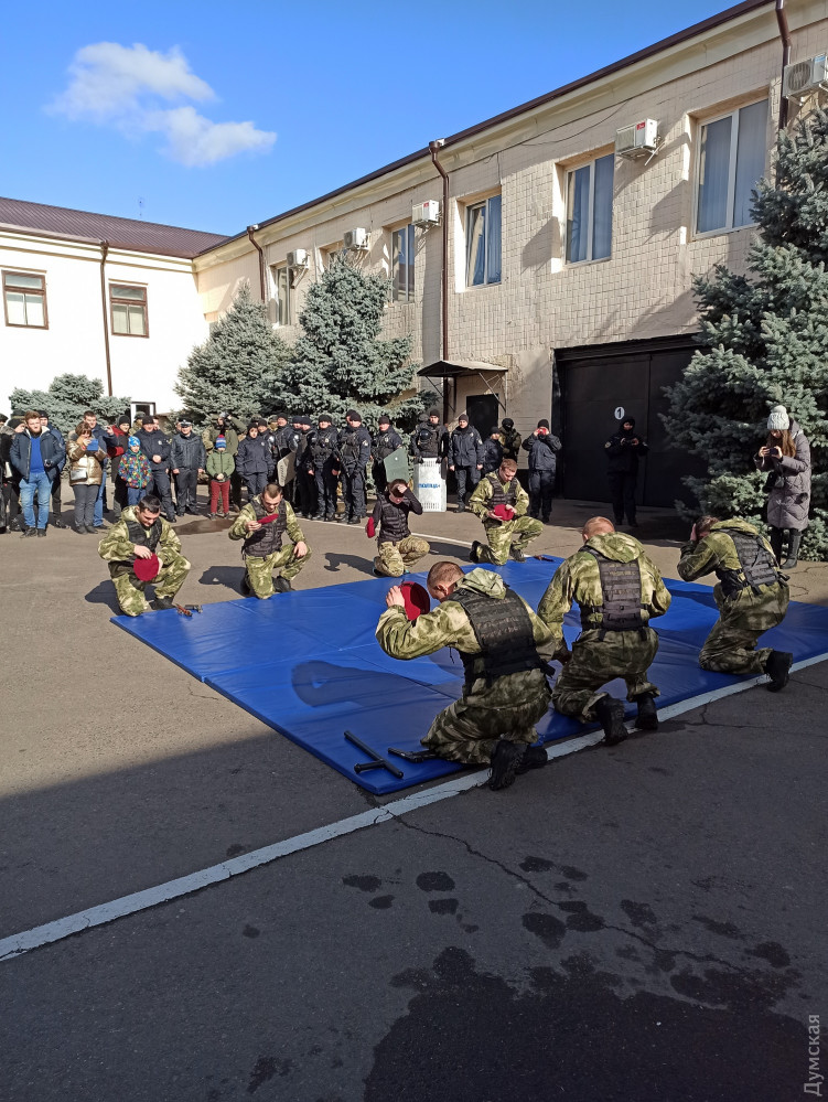 Главное управление Нацполиции в Одесской области решило продемонстрировать, как живет и чем занимается наше подразделение «Беркута», которое после революции стало называться батальоном полиции особого назначения (БПОН). Cегодня журналистов пригласили в расположение спецбата во Втором Разумовском переулке на Молдаванке, где показали отремонтированный спорткомплекс. Кроме того, база полицейского спецназа обрела новую крышу и канализацию. Чтобы развлечь визитеров, бойцы провели показательные выступления. Справедливости ради отметим, что знак равенства между старым «Беркутом» и новым БПОНом ставить нельзя. Во-первых, бывшие «беркута» составляют в подразделении меньшинство. Их легко отличить по полученным в дореформенное время краповым беретам: да, полицейские нарушают установленную форму одежды, но и ответственности за это в МВД Украины не предусмотрено. Кстати, в киевских событиях 2014 года одесские спецназовцы не участвовали. Впрочем, не по своей воле: тогда, если помните, их заблокировали прямо на базе евромайдановцы. Во-вторых, сейчас батальон практически не привлекается к охране общественного порядка, он не гоняет бабушек, торгующих семечками, как делал в свое время «Беркут», а занимается прямыми обязанностями — задерживает опасных преступников. В-третьих, за последние пять лет эти бойцы почти не были замечены в чем-то предосудительном, за исключением нескольких эксцессов вроде избиения посетителей ресторана «Шу-Шу». Многие сотрудники БПОН прошли войну на востоке, у многих есть государственные награды. Но вернемся к базе на Молдаванке. Еще полгода назад помещения тренировочного комплекса находились в заброшенном состоянии. Теперь здесь оборудовали современный тренажерный зал, развесили боксерские груши и расставили манекенов для отработки приемов рукопашного боя. «Спортзал — это первый элемент для тренировок наших спецназовцев, чтобы они эффективно выполняли свою работу и могли задержать преступника по горячим следам. Пусть это будет раз в год, но задание будет выполнено эффективно», — поведал начальник ГУНП генерал полиции III ранга Олег Бех. По словам главного полицейского области, в помещении батальона особого назначения поменяли крышу, полы и систему водоотведения, оборудовали современные душевые кабинки и раздевалки. Деньги — 3 млн грн - выделило не государство, а облсовет. Напомним, это обычная практика: мэрия финансирует ремонт зданий ГУНП и облпрокуратуры, выделяет землю прокурорским работникам, область закупает технику для СБУ и, как выясняется, ремонтирует здания экс-«Беркута». К открытию спорткомплекса и душевых приурочили выставку техники и оружия спецбата, на которую пришли поглазеть как взрослые, так и дети. Полицейские продемонстрировали свои пистолеты, автоматы, пулеметы, гранаты, беспилотные летательные аппараты, бодикамеры с качеством 4к, транслирующие картинку в штаб или ситуационный центр; мультитулы для взрывотехников, фонари с дальностью свечения 900 метров и питьевую систему Camelbak. Полицейские спецназеры продемонстрировали собравшимся технику рукопашного боя и навыки по обезвреживанию злоумышленников. Среди них была и девушка, которая ловко укладывала мускулистых парней на лопатки и отбивалась от нападений. Всего БПОН насчитывает 390 сотрудников, которые работают в составе не