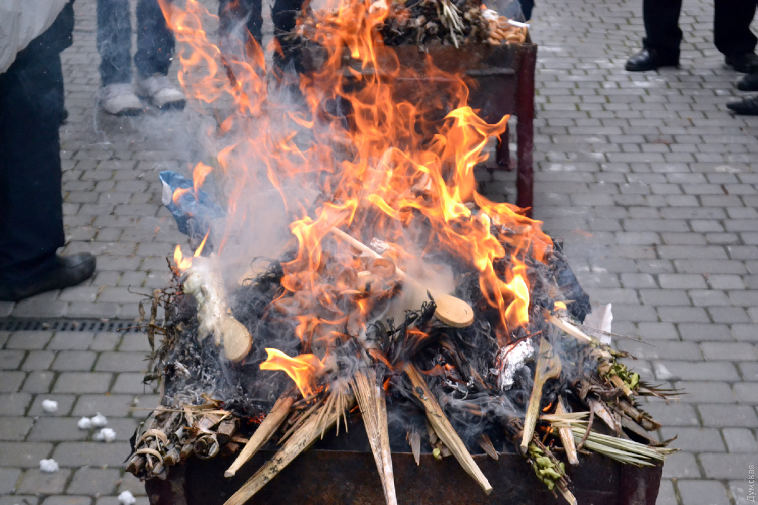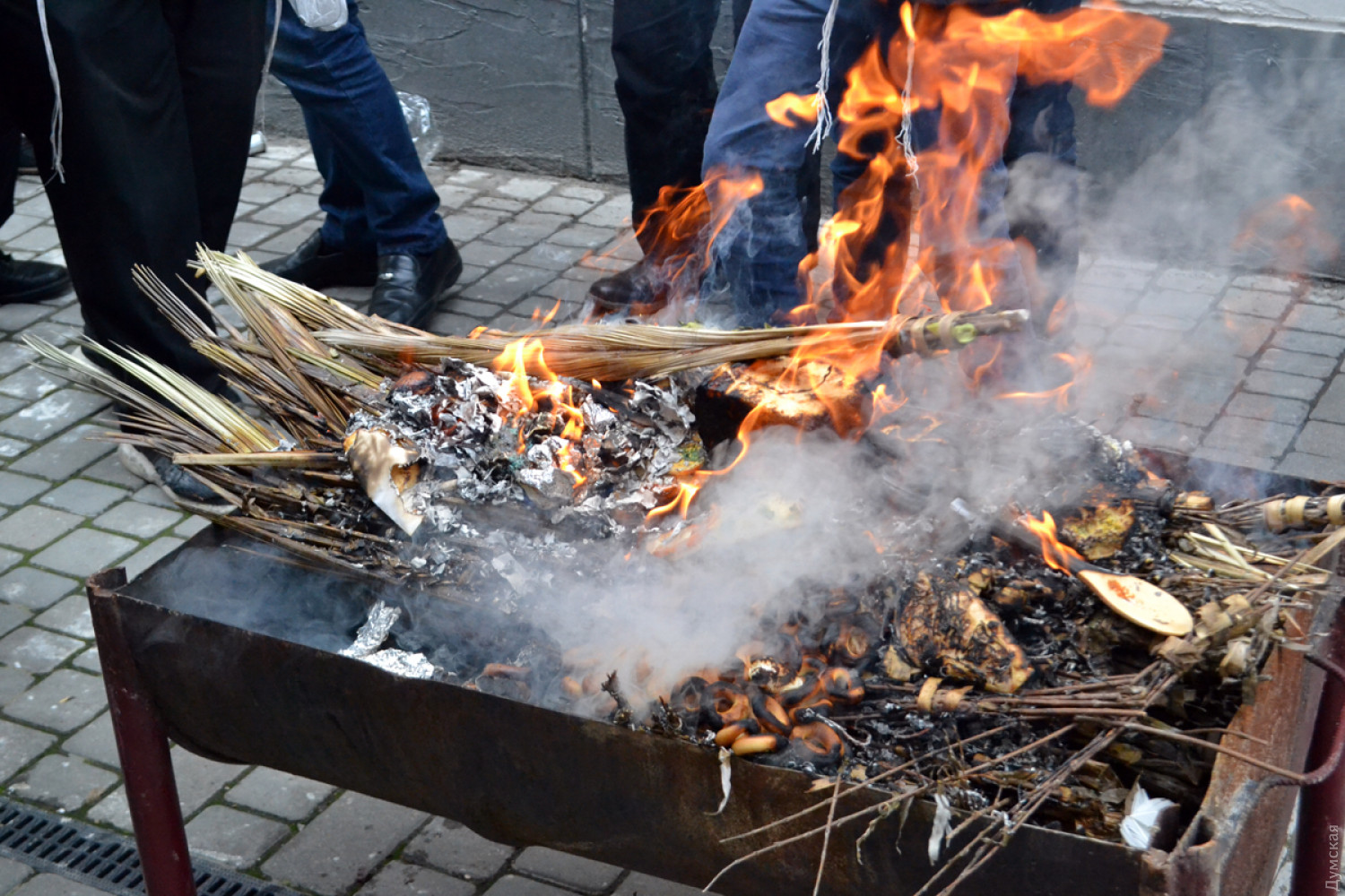 Праздник пресных лепешек: в канун Песаха одесские евреи сожгли весь квасной хлеб, что нашли у себя домаЧерез несколько часов, когда зайдет солнце, одесские евреи начнут отмечать один из главных своих праздников — Песах, — который продлится до вечера 27 апреля. Утром же они провели обряд сжигания так называемого хомеца, квасного хлеба. «Думская» наблюдала за этим любопытным действом во дворе синагоги Бейт Хабад на Осипова, 21. Песах — праздник в память об исходе евреев из Египта. В этот день еврейский народ освободился из египетского рабства и отправился в землю, которую Всевышний обещал им еще со времен Авраама Исаака и Яакова. Сжигание хомеца — Песах еще называют «праздником пресных лепешек» — служит напоминанием о том, что евреи так стремились к свободе, что, получив приказ Бога уйти из Египта, даже не стали ждать, пока взойдет тесто (оставленное для того, чтобы опара взошла к утру), и отправились в пустыню с чем было. В результате им пришлось есть муку, смешанную с водой, то есть мацу. «В Торе (Пятикнижие Моисеево) дана заповедь — избавляться на все дни Песаха от всего хомеца, имеющегося в доме (хомец — продукт брожения одного из пяти злаков: пшеницы, полбы, ячменя и т.д. Как пример хомеца — все злаковые спирты, пиво, хлеб и т.д.) Хомец либо уничтожают, либо выкидывают, либо продают (пример: бутылка водки. У кого-то поднимется рука ее вылить, у кого-то хватит печени, чтобы выпить ее до наступления праздника, остальным же, слабым духом и печенью, следует эту водку продать). Существует специальная процедура, когда евреи поручают своему раввину продать весь имеющийся у них в доме хомец, а то, что не продано и не уничтожено, объявляется ничейным и не имеющим для бывшего хозяина никакой ценности, как прах земной», — поясняет пресс-секретарь общины Болеслав Капулкин. По словам заместителя главного раввина Одессы и Юга Украины Фишла Чичельницкого, сегодняшнему ритуалу сжигания хомеца, который предваряет празднованию Песаха, предшествовал месяц подготовки: «Начиная с праздника Пурим, еврейские дома очищались от хомеца. Хомец – это квасное, любая мука из пяти злаков, которая была в соединении с водой больше чем 18 минут, она нам запрещена на время всего праздника Песах. Вчера каждая еврейская семья собралась дома и со свечами, перьями, деревянными лопатками обошла свое жилье, проверив каждый угол на наличие квасного. Все остатки этого квасного собраны в пакет и принесены сюда, где их сжигают. Когда сжигаются остатки квасного, произноситься специальная формула, в которой человек на время праздника Песах отрекается от всего квасного, и он говорит: «Все квасное, которое я не заметил и не нашел, является ничейным. На время праздника Песах мы едим только мацу и не едим ничего квасного». По словам рава Фишла, у этого обряда есть и духовный аспект: «Квасное символизирует гордыню человека. Еврей должен выйти из собственного Египта, а для этого необходимо избавиться от гордыни, немного себя почистить. Для того, чтобы рядом с тобой были люди и Бог, необходимо быть чуть-чуть меньше. Это не значит, что должна быть занижена самооценка, надо понимать, что Бог меня наградил определенными качествами и я эти качества должен правильно использовать», — пояснил раввин. Фото, видео — Андрей Колисниченко СМЕРТЬ РОСІЙСЬКИМ ОКУПАНТАМ! Помітили помилку? Виділяйте слова 