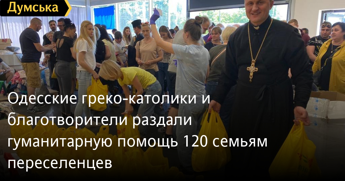 Одесские греко-католики и благотворители раздали гуманитарную помощь 120 семьям переселенцевОдесский экзархат Украинской греко-католической церкви и благотворительный фонд «Платинум Добро» раздали гуманитарную помощь 120 семьям переселенцев из Донецкой, Николаевской и Херсонской областей. В экзархате сообщили, что владыка Михаил Бубний посетил Одесский центр помощи, пообщался с переселенцами и благословил их. Нуждающимся раздали 360 продуктовых наборов, такая помощь будет оказываться и в дальнейшем. Центр помощи, действующий в Одессе на проспекте Небесной сотни, 6а/1, ежедневно оказывает помощь более 300-800 семьям, находящимся за чертой бедности из-за войны, а также переселившимся из других регионов из-за военных действий. Помітили помилку? Виділяйте слова з помилкою та натискайте control-enter |