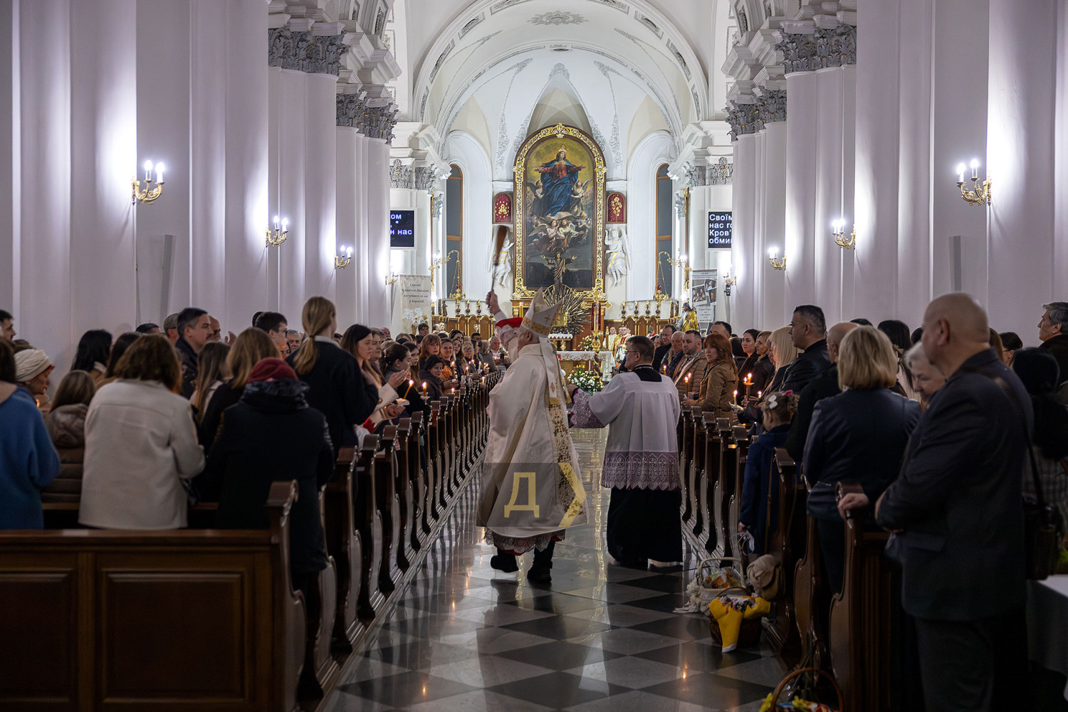 Корреспондент «Думской» накануне побывал на вечерней литургии в кафедральном соборе Успения Пресвятой Богородицы Девы Марии на Европейской улице.