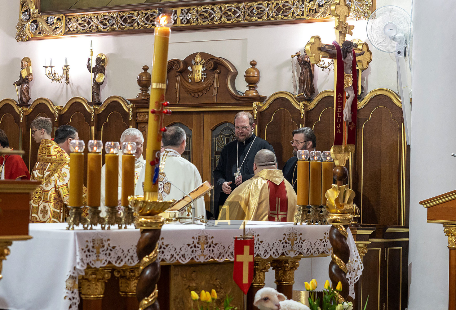 В своей проповеди епископ Одесско-Симферопольского диоцеза Станислав Широкорадюк призвал верующих молиться о погибших и мире. Он отметил, что украинский народ, переживающий тяжелые испытания, как никогда нуждается в надежде и духовной поддержке, и подчеркнул символичность Пасхи как праздника воскресения и победы жизни над смертью.