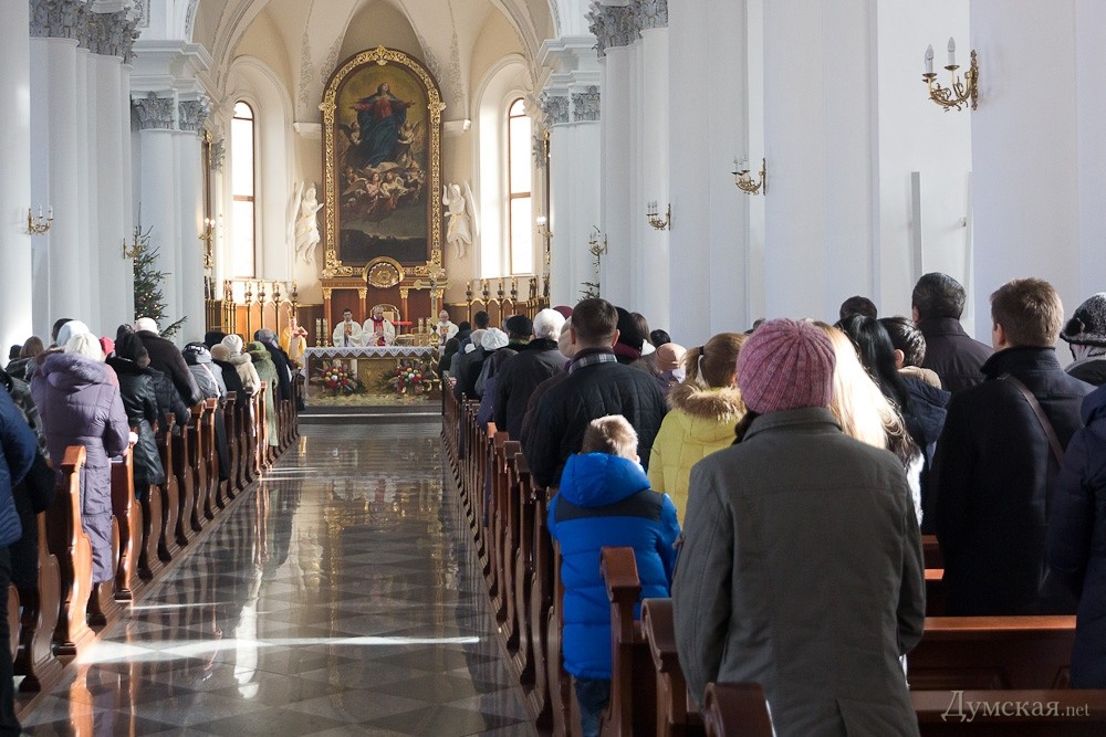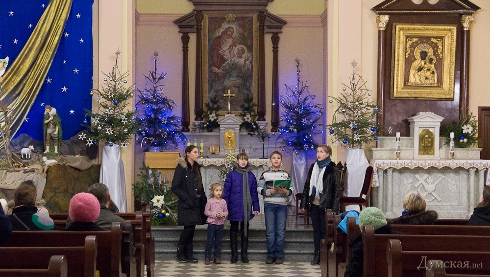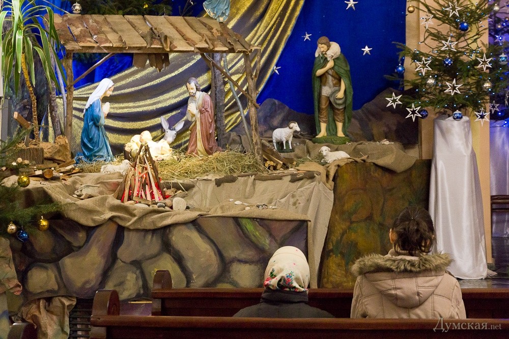 Сегодня католики всего мира отмечают самый главный христианский праздник — Рождество Иисуса Христа. Во всех католических храмах Одессы установлены вертепы и проходят праздничные мессы. В римско-католическом соборе Успения Пресвятой Богородицы мессу проводит епископ одесский и симферопольский. Как рассказал «Думской» настоятель собора отец Иосиф, из-за плохой работы общественного транспорта праздничную мессу пришлось перенести на более ранее время. «Вчера собор еле вместил всех верующих. К нам пришло более двух тысяч человек, — говорит священник. – В тяжелые времена люди начинают искать Бога. Праздник Рождества учит нас, что мы должны прощать обиды и помнить, что все мы братья и сестры». В костеле Святого апостола Петра, что на Гаванной, также проходят праздничные богослужения. Кроме того, сегодня там проводят репетиции коллективы от различных национальных обществ, которые в субботу выступят на конкурсе колядок. Фото Александра Гиманова СМЕРТЬ РОСІЙСЬКИМ ОКУПАНТАМ! Помітили помилку? Виділяйте слова з помилкою та натискайте control-enter |