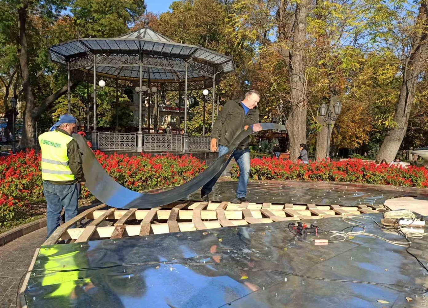 «В минувшем году в ходе подготовки фонтанов к зиме специалисты КП «Сервисный центр», учитывая европейский опыт, в рамках эксперимента один из фонтанов Одессы законсервировали по новой методике – полностью запечатали его листами металла. В этом году, опираясь на позитивный прошлогодний опыт, специалисты КП «Сервисный центр» применили новую технологию консервации уже на двух фонтанах», — сообщили в пресс-службе.