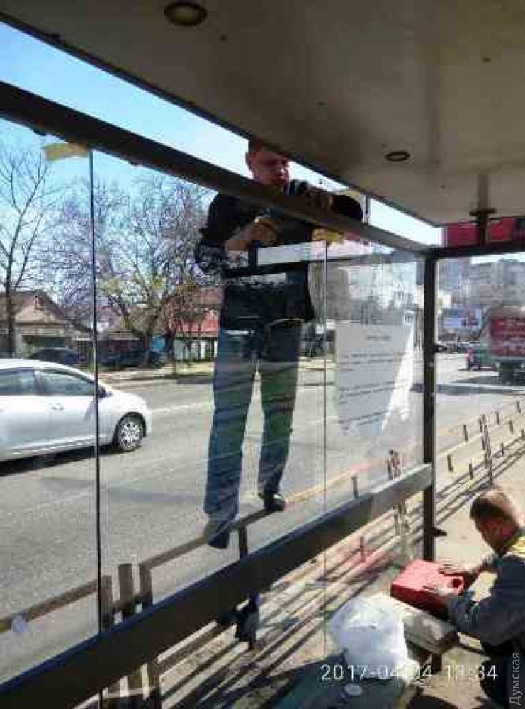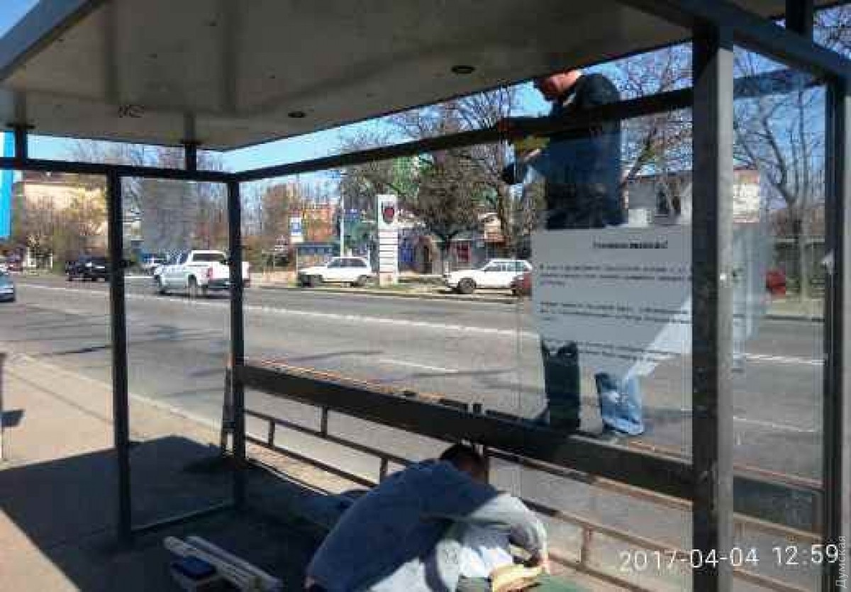 Одесские коммунальщики начали восстанавливать остановочные комплексы, уничтоженные вандалами.