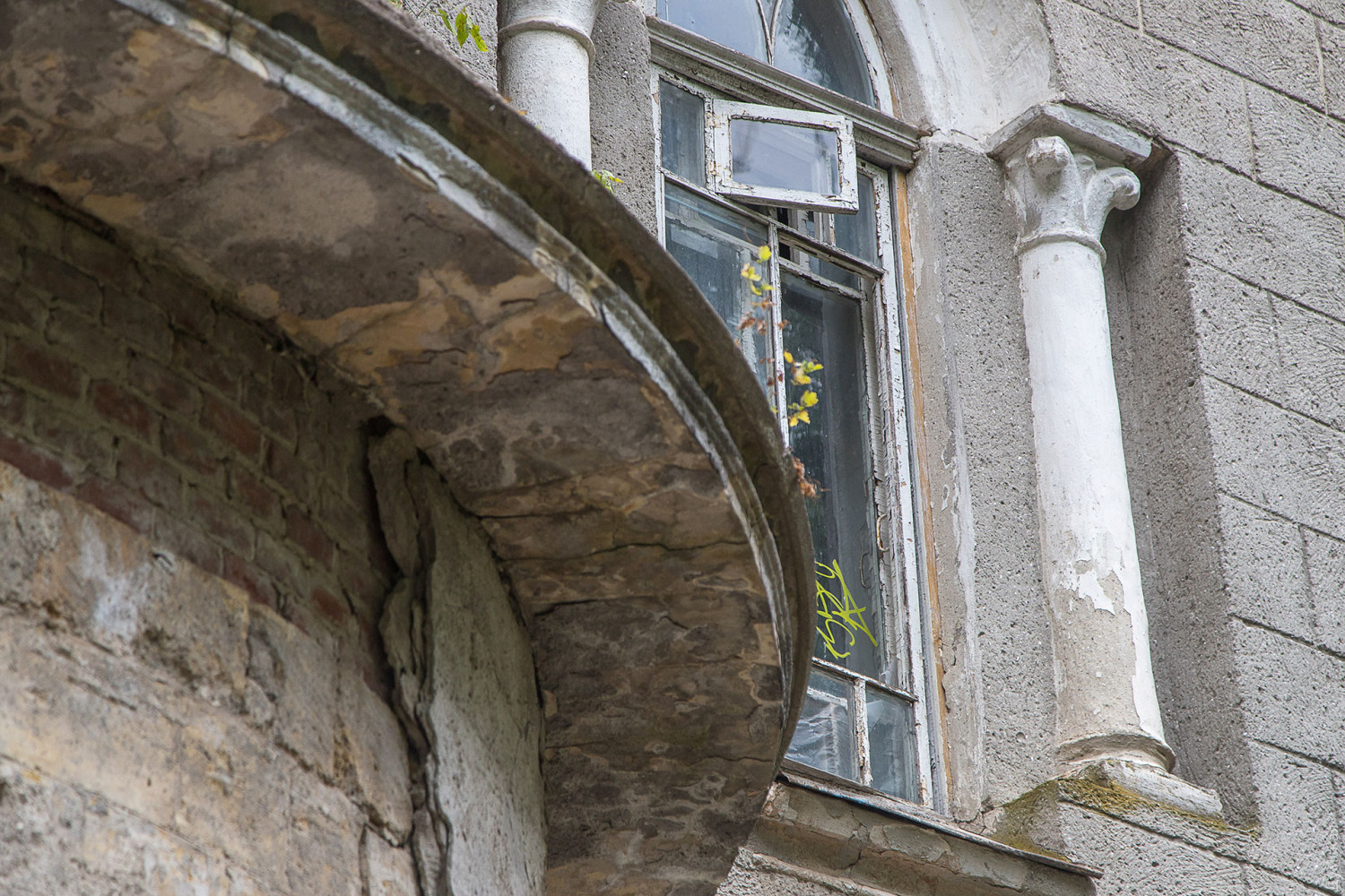 Двухэтажный особняк действительно находится в ужасающем состоянии. За десять лет здесь срезали весь металл, который только могли, включая ажурную кованную лестницу из башенки. В некоторых местах обрушилась крыша и межэтажные перекрытия. Элементы фасада грозят рухнуть, а сама территория находится в запустении.