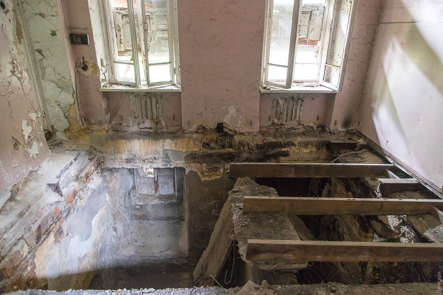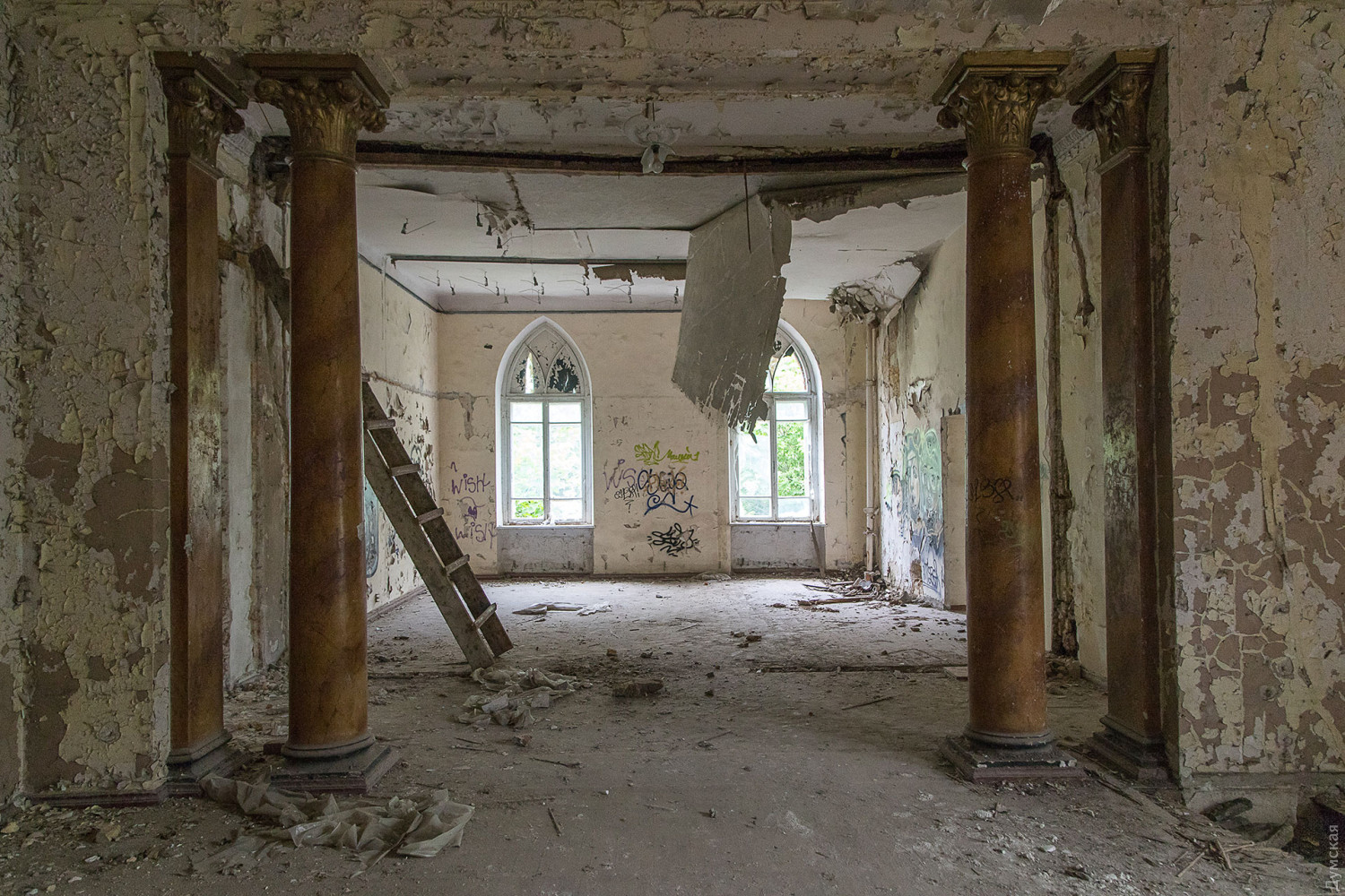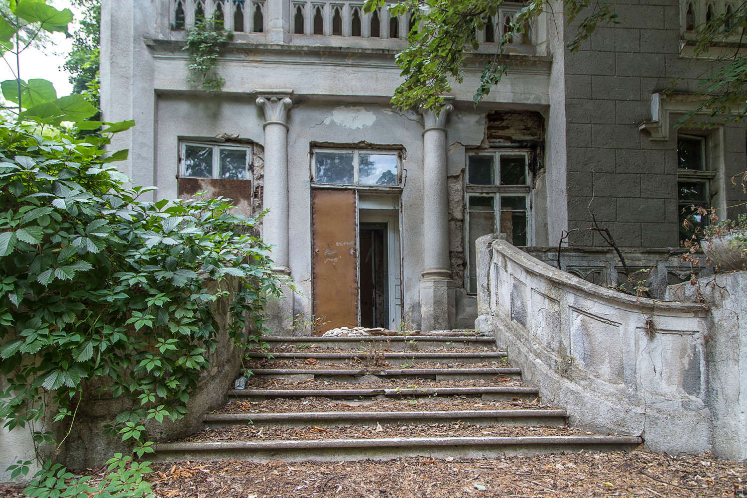 Честно говоря, я шокирован. В году так, 2005 в свою студенескую бытность я подрабатывал охранником в ночь. Для студента самое оно. И это был один из обьектов. Я провел на нем, ну, наверное, год, не меньше. Имею ввиду весь санаторий. Тогда это здание было шикарным, только после ремонта. В нем одно время, хотели разместить телеканал АТВ, сами знаете кого. Были все двери, помещения отапливались, нигде ничего не текло. Тогда самым забршеным был спальный корпус, он вглубь за «замком», но и то только потому что здание советское без особого ремонта и все. Там какой-то дворник жил с женщиной, которая зарабатывала самой древней профессией. Мы еще всегда смеялись с этой причудливой парочки. А так територия была ухоженной, а задния после ремонта.