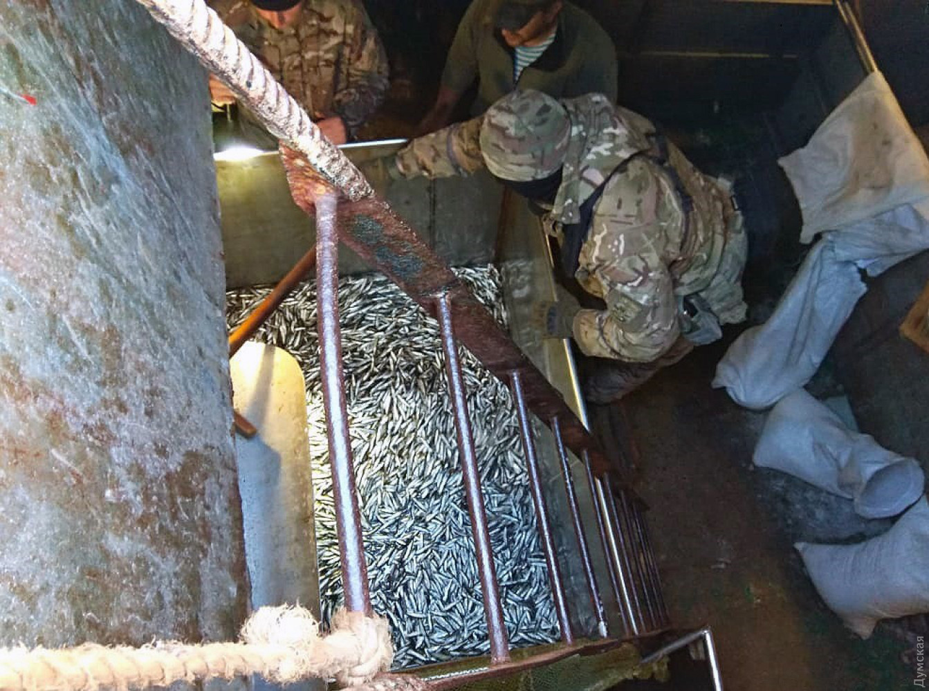 Одесские морские пограничники задержали рыболовецкое судно, незаконно использовавшее тралРыболовецкое судно, которое нарушало правила промыслового рыболовства в бассейне Черного моря, задержали возле Тендровской косы сотрудники Одесского отряда морской охраны. Как сообщили в пресс-службе отряда, правоохранители получили оперативную информацию о незаконном промысле и направили в этот район тактическую группу катеров. На борту, кроме экипажей, были бойцы подразделения силовой поддержки отдела специальных действий и представители рыбоохранного патруля. Возле Тендровского маяка они обнаружили рыболовецкое судно, которое осуществляло траление водных живых биоресурсов с нарушением правил. Морские пограничники остановили судно и высадили на борт досмотровую группу, которая обнаружила запрещенное для использования в этом районе орудие рыболовства — мокрый трал с остатками рыбы. Кроме того, правоохранители нашли улов — 1300 кг черноморских шпрот и 12 кг камбалы. Капитан судна свою вину признал. В отношении него составили протокол об административном правонарушении, предусмотренном ст. 85-4 КУоАП. Судно-нарушитель было отконвоировано в порт Очаков для передачи рыбоохранному патрулю и дальнейших административных действий. Материалы по признакам уголовного правонарушения, предусмотренного ст. 249 УК Украины, переданы Национальной полиции. Тем временем другой катер Морской охраны из той же тактической группы продолжил обследовать район. В месте сезонного скопления рыбы камбалоподобных пород он обнаружил буи с сетями без соответствующих бирок. Экипаж катер выбрал бесхозного орудия лова. В сетях длиной примерно 1,5 км они нашли 15 камбал калкан, одну севрюгу и 35 крабов. Животных выпустили в море, а сети передали рыбоохранному патрулю. СМЕРТЬ РОССИЙСКИМ ОККУПАНТАМ! Заметили ошибку? Выделяйте слова с ошибкой и нажимайте control-enter |