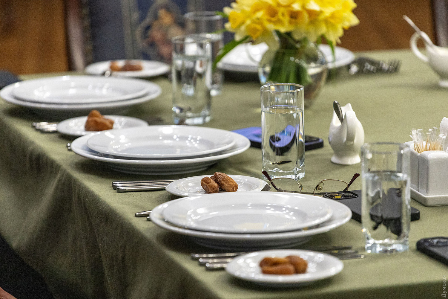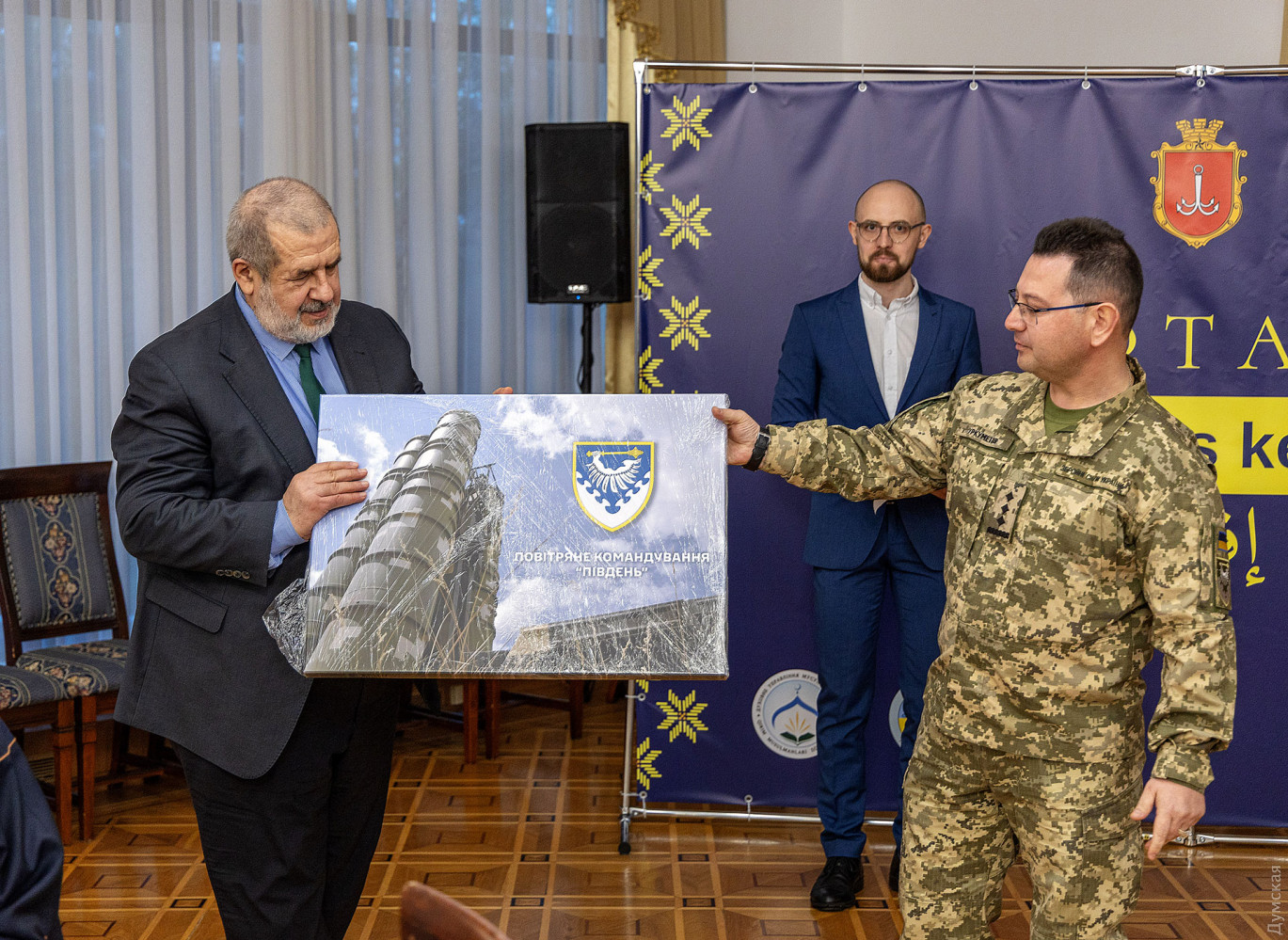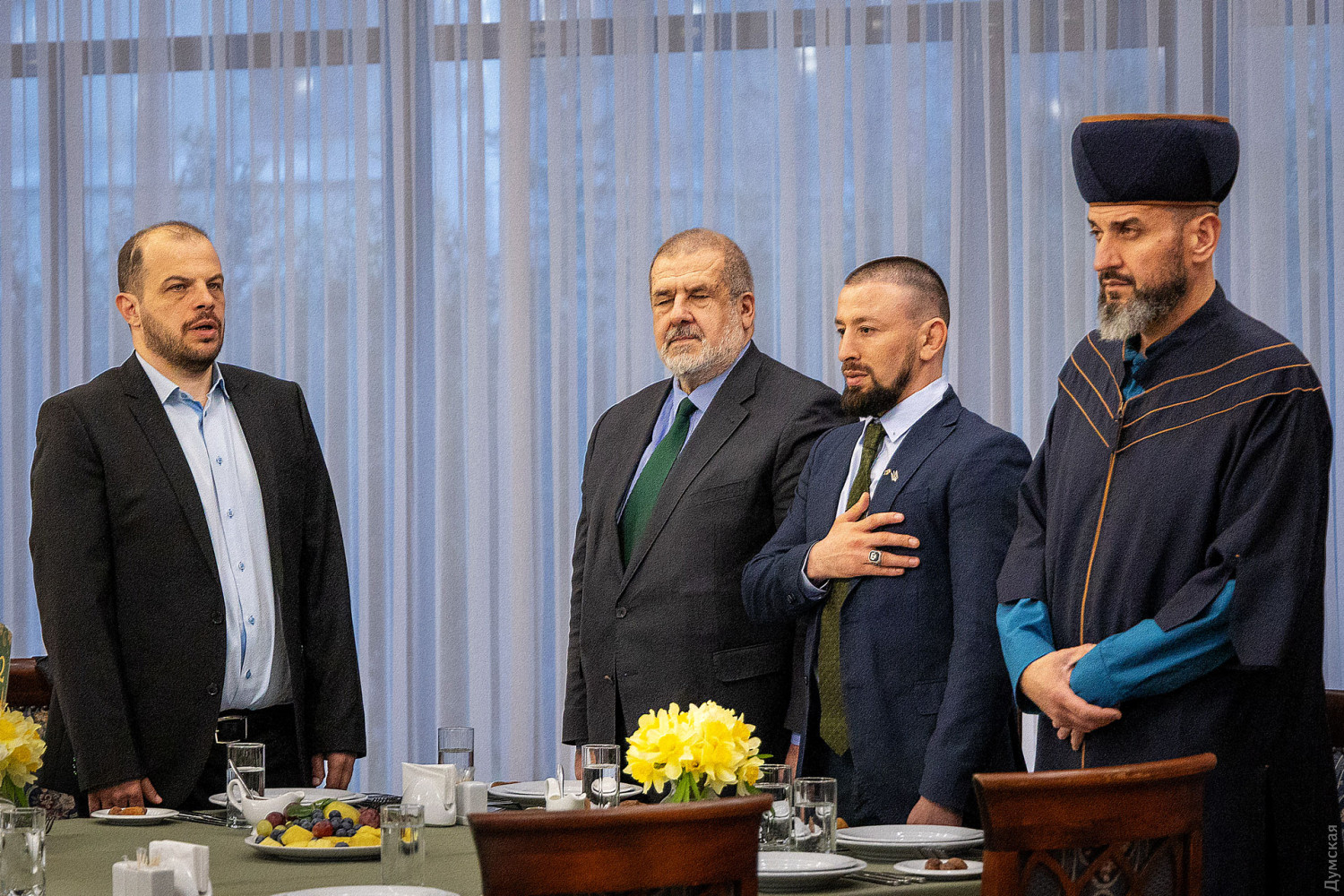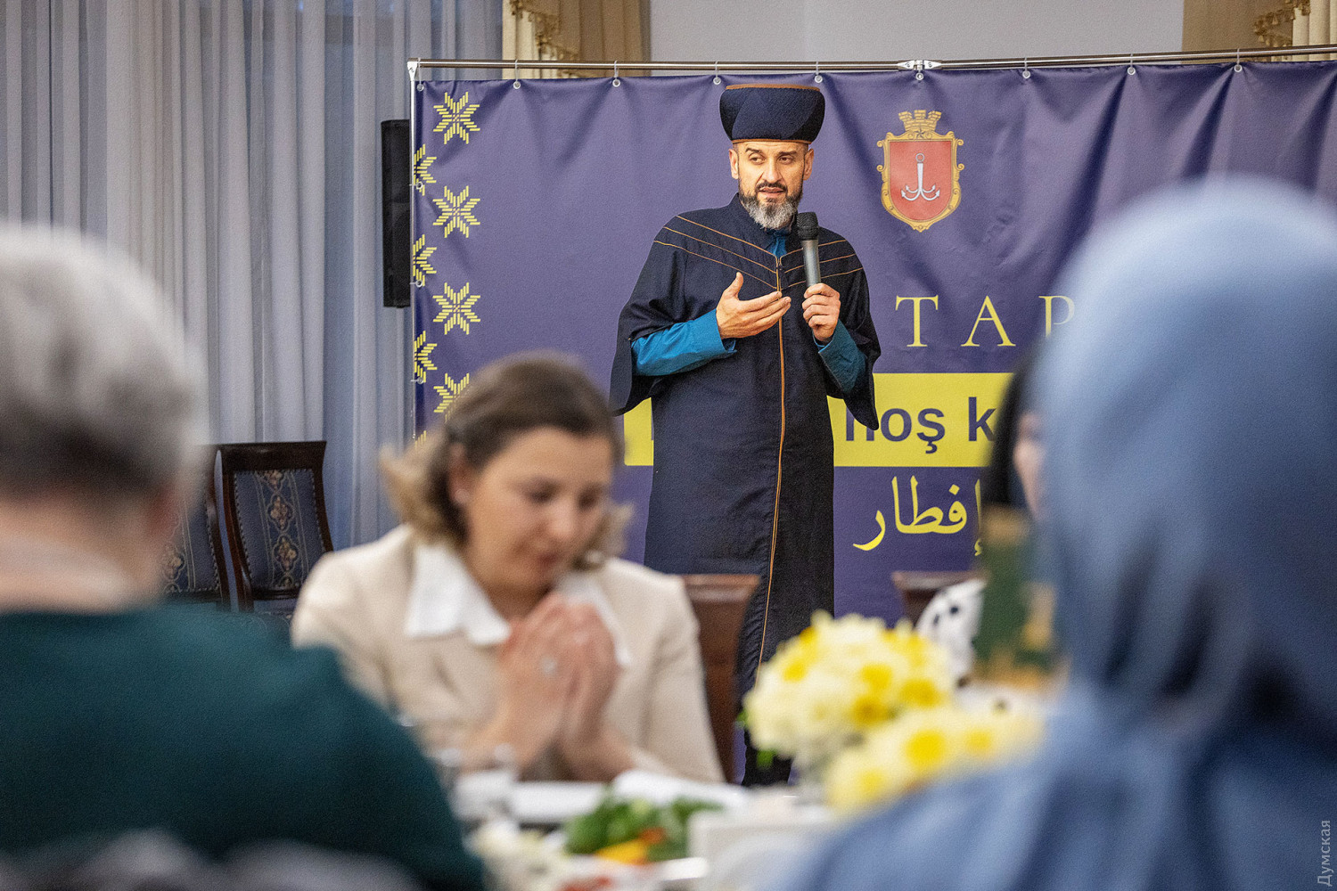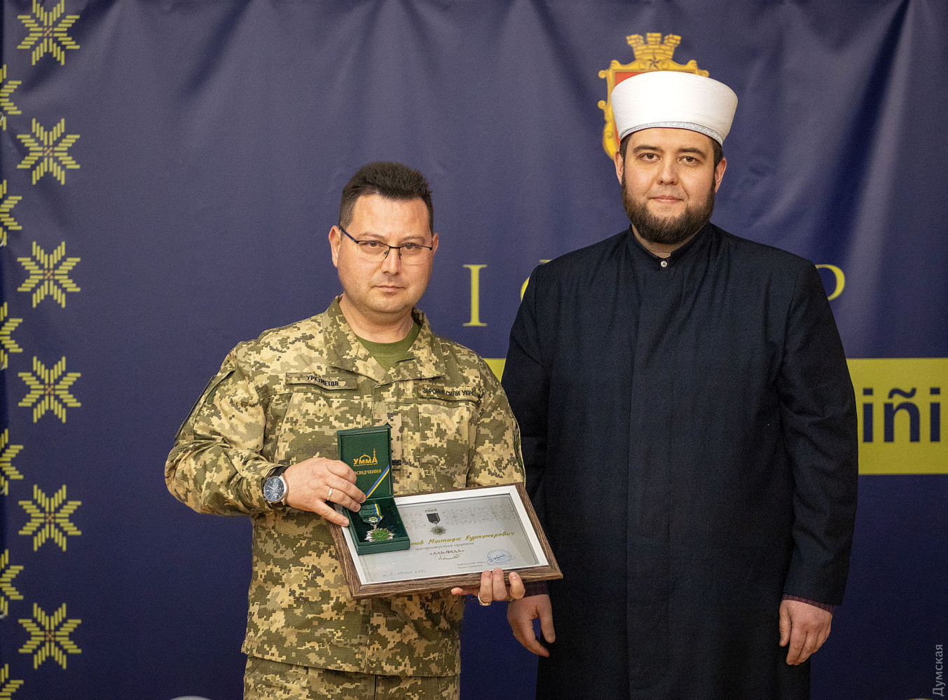 Перший одеський іфтар — вечерю під час священного для мусульман місяця Рамадан, провели вчора в Будинку прийомів Одеської обласної ради. Іфтар — перший добовий прийом їжі, що символізує завершення посту в один із днів Рамадану. Традиційно розговіння починається з кількох плодів фініка та склянки води, після чого можна їсти звичайні страви. У заході взяли участь представники національних спільнот Одеської області, представники духовенства, українські військовослужбовці-мусульмани, які нині служать у лавах Збройних сил України, а також представники обласної та міської влади. Присутні вшанували хвилиною мовчання пам'ять воїнів, які віддали свої життя, захищаючи українську державу. «Іфтар — це символ Рамадану, а Рамадан — це про цінності, про волю, боротьбу і перемогу, — розповів присутнім голова Духовного управління мусульман Криму і міста Севастополя Айдар Рустемов. — Насамперед це духовне очищення і віра. Ми знаємо, що багато перемог було досягнуто саме в місяць Рамадан, і тому просимо Всевишнього, щоб він прийняв наш піст і подарував нам перемогу, щоб наступний Рамадан ми святкували у звільненому Криму». Організаторами заходу виступили громадська організація «Кримські татари Одещини», а також Духовне управління мусульман України «Умма». За словами голови ГО «Кримські татари Одещини», депутата обласної ради Февзі Мамутова, крім релігійної значущості для мусульман, іфтар також покликаний налагодити спілкування між різними конфесіями та релігіями. «Іфтар, який нам вдалося організувати, — це культурний і просвітницький захід, на який ми можемо запросити людей інших національностей і віросповідань, щоб вони дізналися більше про цю традицію, — розповів Февзі Мамутов. — Кожна така подія дає змогу тим, хто живе і б'ється пліч-о-пліч, краще пізнавати одне одного. Сенс у тому, щоб одеська мультикультурність, про яку всі говорять, була якісною, і ми всі разом могли будувати сильну і незалежну Україну». Голова Меджлісу Кримсько-татарського народу Рефат Чубаров подякував усім, хто причетний до організації іфтару. «Українська земля та українська держава — це дві цінності, які викристалізовують українську політичну націю, — впевнений Рефат Чубаров. — Люди різного етнічного походження та різних релігій сьогодні однаково розуміють дві головні цінності: однаково люблять та захищають землю, на якій живуть, та розуміють, що лише незалежна українська держава зможе їм створити умови для того, щоб вони жили та розвивалися на цій землі. Я впевнений, що ці виклики пройдуть. Вони даються для того, щоб люди стали сильнішими і чистішими, а всевишній ніколи не дає більше, ніж людина може витримати». Муфтій духовного управління мусульман України «Умма» Мурат Сулейманов вручив нагороди голові Меджлісу кримсько-татарського народу та українським військовослужбовцям: орден «Аль-Фіда» і медаль «За служіння ісламу». «Ми знаємо, що місяць Рамадан дуже важливий для всіх мусульман, тому що війна і піст мають багато спільного, — розповів Мурат Сулейманов. — Під час посту людина себе готує. Піст — це терпіння, стійкість, самоконтроль. Під час війни, коли я говорю з військовими — я бачу, що вони стійкі й терплячі, і це приклад для нас. Я дуже радий, що в Одесі провели такий захід. Цей іфтар для наших воїнів, тому що ви приклад для нас і герої». Нагадаємо, 