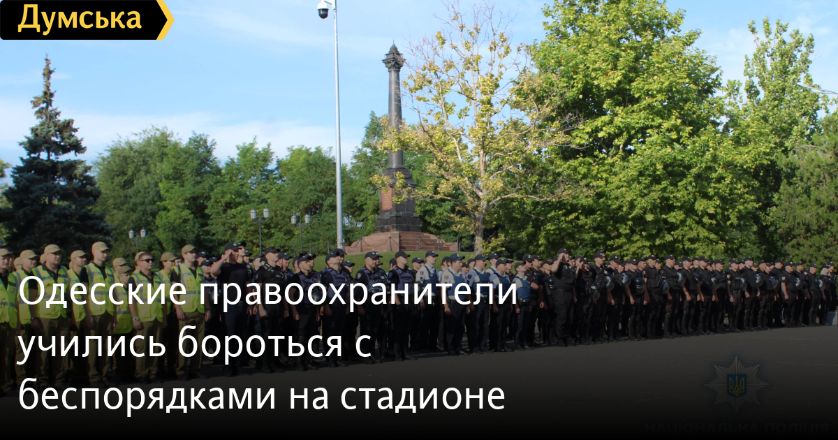 Накануне матча за Суперкубок Украины, который пройдет в Одессе 21 июля, на стадионе «Черноморец» прошли учения правоохранителей. Как сообщила пресс-служба ГУНП, в ходе учений правоохранители отрабатывали действия по противодействию нарушениям общественной безопасности и порядка во время массовых мероприятий. «Для того, чтобы максимально уменьшить те проблемные моменты, которые могут возникнуть во время футбольного матча, мы с помощью таких тренировок учимся отрабатывать действия правоохранителей до автоматизма», — отметил заместитель начальника ГУНП Сергей Махотин. СМЕРТЬ РОССИЙСКИМ ОККУПАНТАМ! Заметили ошибку? Выделяйте слова с ошибкой и нажимайте control-enter |