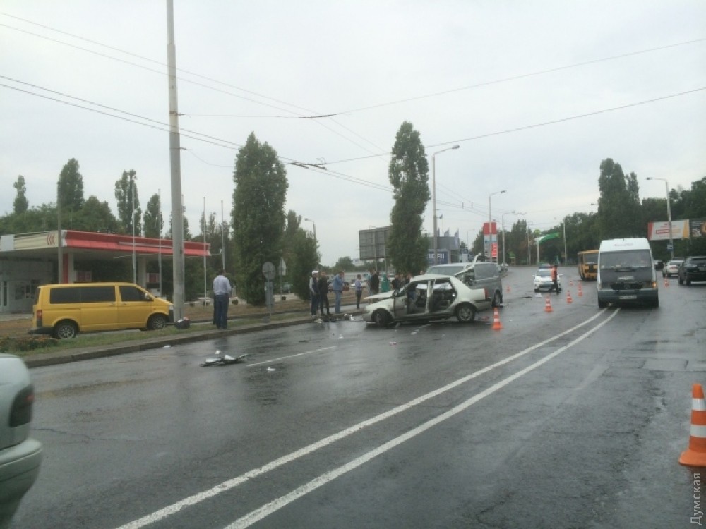 Серьезное ДТП произошло 12 сентября в районе одесского Автовокзала. Около 16 часов на улице Михаила Грушевского не поделили дорогу две иномарки – легковушка Dacia и микроавтобус Volkswagen Transporter.