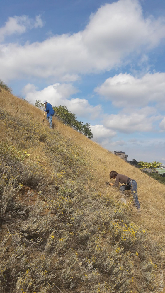 Энтузиасты-озеленители из одесской группы «Отчаянные цветоводы» продолжают высаживать на приморских склонах краснокнижные цветы.