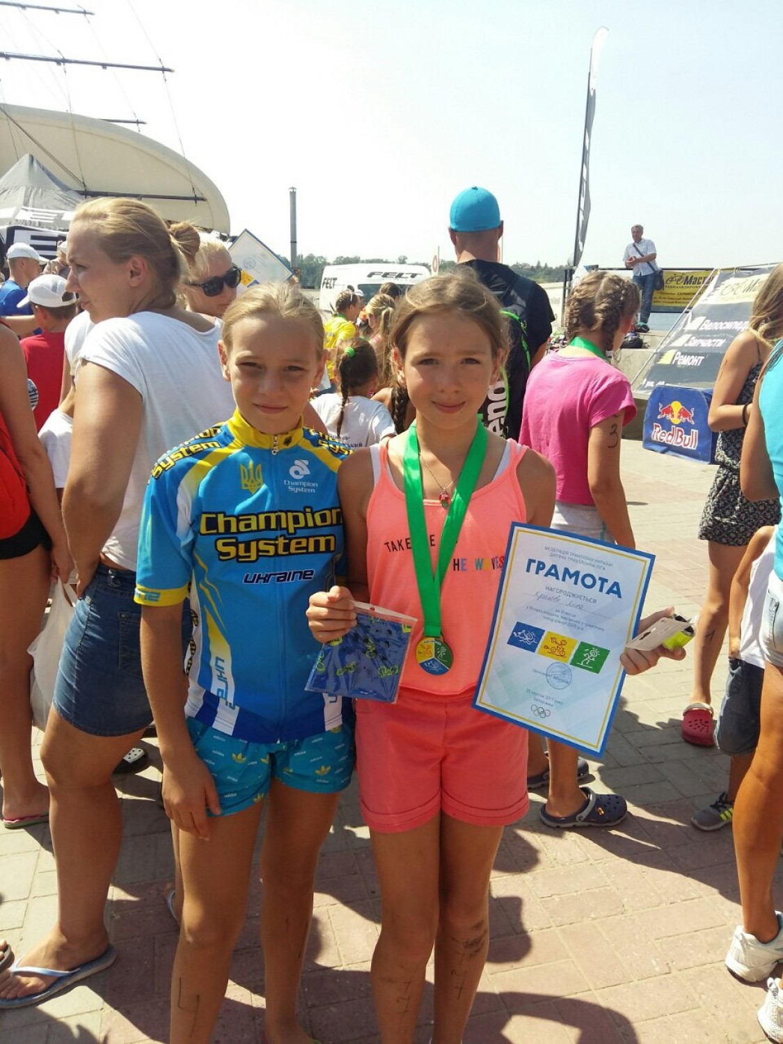 Одесские триатлеты блестяще выступили на чемпионате Украины и в международном турнире в РумынииОдесские триатлеты, занимающиеся в клубе «4-th element», завоевали медали чемпионата Украины, состоявшегося в Запорожье, после чего блестяще выступили в международном турнире, прошедшем в Румынии. Как сообщает спортивный корреспондент «Думской», на чемпионате Украины победными для наших земляков стали выступления в индивидуальной и командной гонке. Александра Заровная и Арина Бабич в который раз доказали, что им нет равных в нашей стране в возрастной категории девочек 13-15 лет. Саша в итоге стала первой, а Арина – второй. Еще одно «золото» одесситы завоевали в командной гонке. Кирилл Новиков, Денис Граждан, Арина Бабич и Александра Заровная показали лучшее время и отправились домой в отличном настроении и с очередными медалями. В румынском городе Тулча, где под эгидой Европейской федерации триатлона прошли соревнования «Delta Romania Triathlon», за победу сражались спортсмены из Израиля, Венгрии, Хорватии, Беларуси, Сербии, Болгарии, Македонии, Румынии и Украины, но это не помешало занять самые высокие места представителям Одессы. Так, в своих возрастных категориях золотые медали завоевали Александра Заровная (2004 год рождения) и ее сестра Вероника Заровная (2005 год рождения), «серебро» одесской команде принес Артем Дема (2007 г. р.), а Иванна Скидан (2006 г. р.), впервые участвовавшая в международных стартах, стала пятой, что тоже неплохо. Во второй день соревнований Александра Заровная выиграла еще одно «золото», быстрее всех преодолев дистанцию «суперспринт» (400 метров– плавание,10 километров– велосипед, 2500 метров– бег). Добавим, что это были последние соревнования для наших юных триатлетов в этом сезоне. СМЕРТЬ РОСІЙСЬКИМ ОКУПАНТАМ! Помітили помилку? Виділяйте слова з помилкою та натискайте control-enter |