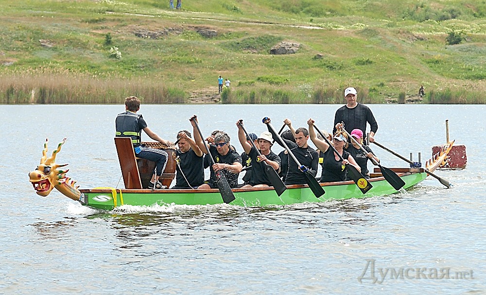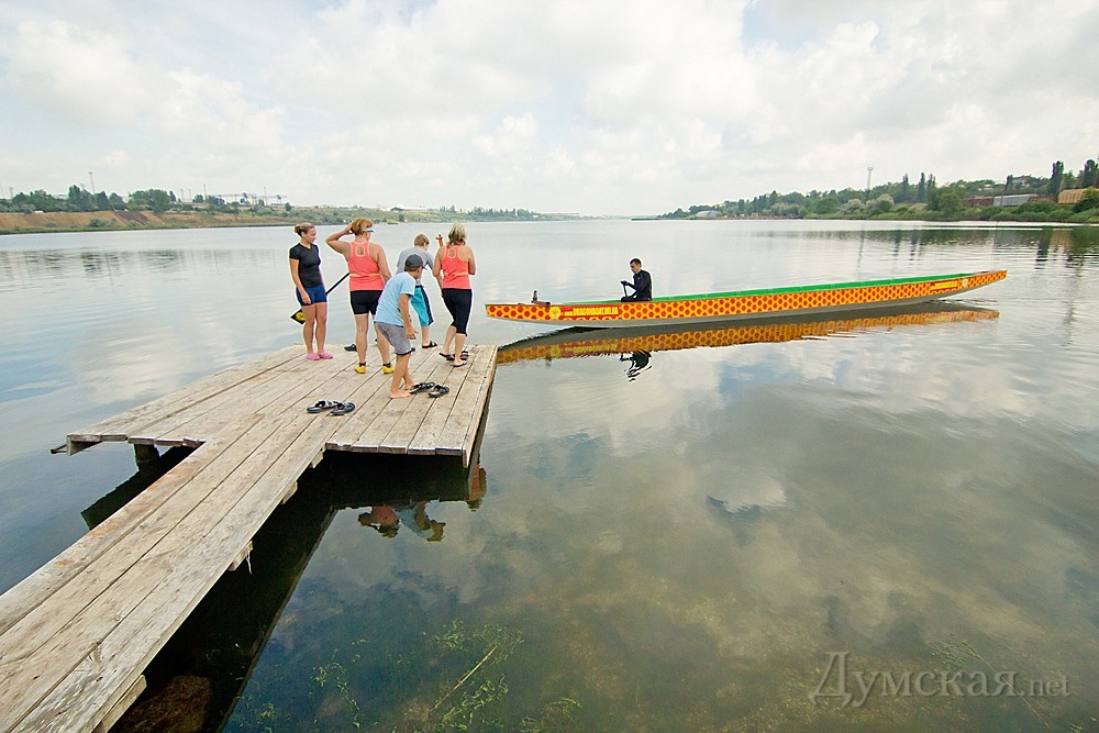 А вот вы знаете, что совсем рядом с Одессой, в 100 метрах от паромной переправы на Сухом лимане, в бетонном вольере вот уже четыре года как живет единственный в области 14-тиметровый дракон? Четыре раза в неделю ярко-оранжевый зверь выползает из своего убежища и спускается на поверхность лимана. А помогает 250-килограммовому монстру покорять водную стихию одесская команда по драгонботу – гребле на драконоподобных лодках. «Думская» пообщалась с одесскими укротителями деревянного чудища и даже побывала на одной из тренировок. Тренируются ребята (команда называется «Корсар») в месте, которое хорошо известно любителям гребли. На Сухом лимане еще с советских времен существует отделение детско-юношеской спортивной школы №6 – гребной. Собственно, большинство «корсаров» — ветераны гребного спорта. К примеру, идейный вдохновитель и лидер одесской команды Виталий Наконечный занимался греблей на байдарке. Начал еще в школе, а продолжил в армии, где отдавал долг Родине в спортроте. Виталий рассказал вашему корреспонденту, что история гребли на лодках-драконах насчитывает уже два тысячелетия. Только в Азии этим видом спорта занимается регулярно около 150 млн человек. В Украине же драгонбот только-только зарождается. Появился он у нас чуть более 10 лет назад, когда Александр Баканычев, возглавивший впоследствии национальную Федерацию гребли на «драконах», привез в Украину первую лодку. Сейчас в нашей стране уже больше тридцати только классических (двадцатиместных) драгонботов. Виталий Наконечный познакомился с «пресмыкающимися» плавсредствами, когда одна из первых украинских команд – «Тамерлан» — пригласила его и еще троих одесских гребцов поучаствовать в соревнованиях в Киеве на дистанции 12 км. «Мне так понравилось, что через полгода я купил на свои деньги двадцатиместную лодку – с веслами, головой и хвостом дракона и, конечно же, барабаном. Обошлась она мне в 6 тысяч долларов. Тогда я начал с нуля создавать команду», — говорит одессит. Сейчас в команде несколько десятков человек. Это люди разного возраста, пола и профессий. Есть среди «укротителей драконов» директора, домохозяйки, программисты. Многие до прихода в команду катались разве что на морских велосипедах. Тренируются все вместе, а на соревнованиях выступают в составе разных экипажей – мужском, женском или смешанном. Представительниц прекрасного пола с каждым годом все больше. «Раньше у нас заправляли в основном мужчины-профи, — говорит «корсар» Карина Вартанян. – Но потом в драгонбот пришли непрофессионалы. Сейчас у нас в команде 12 девушек, так что выносить лодку из ангара стало довольно тяжело». Это не помешало женской составляющей «Корсаров» стать третьей на чемпионате Украины этого года, а в позапрошлом выиграть чемпионат Европы. Многие «укротители» занимаются греблей для поддержания физической формы и тонуса – а что, прекрасный вариант для общего укрепления организма! Особенно, говорят, гребной спорт полезен людям, испытывающим проблемы со спиной. Один из участников команды, 30-тилетний программист Юрий, признался нам, что за полгода, прошедшие с тех пор, как он впервые уселся на банку «дракона», его рост увеличился на 2 сантиметра – за счет укрепления мышц спины и, как следствие, появления правильной осанки. И немудрено – ведь тренировки у «корсаров» не из легких. 