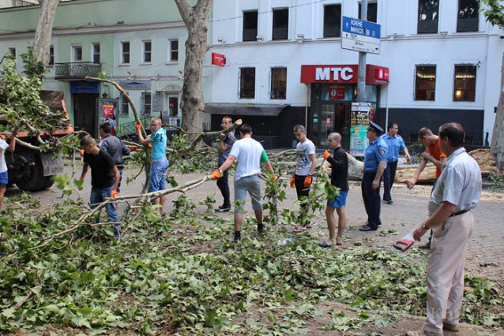 По словам замначальника горУВД по общественный безопасности Алексея Вдовиченко, сразу после ударов стихии были созданы круглосуточные оперативные штабы. 175 курсантов училища профподготовки и 130 курсантов Одесского государственного университета внутренних дел, офицеры, личный состав управления с раннего утра помогали разбирать завалы на улицах Маразливеской, Пушкинской, Канатной и других.