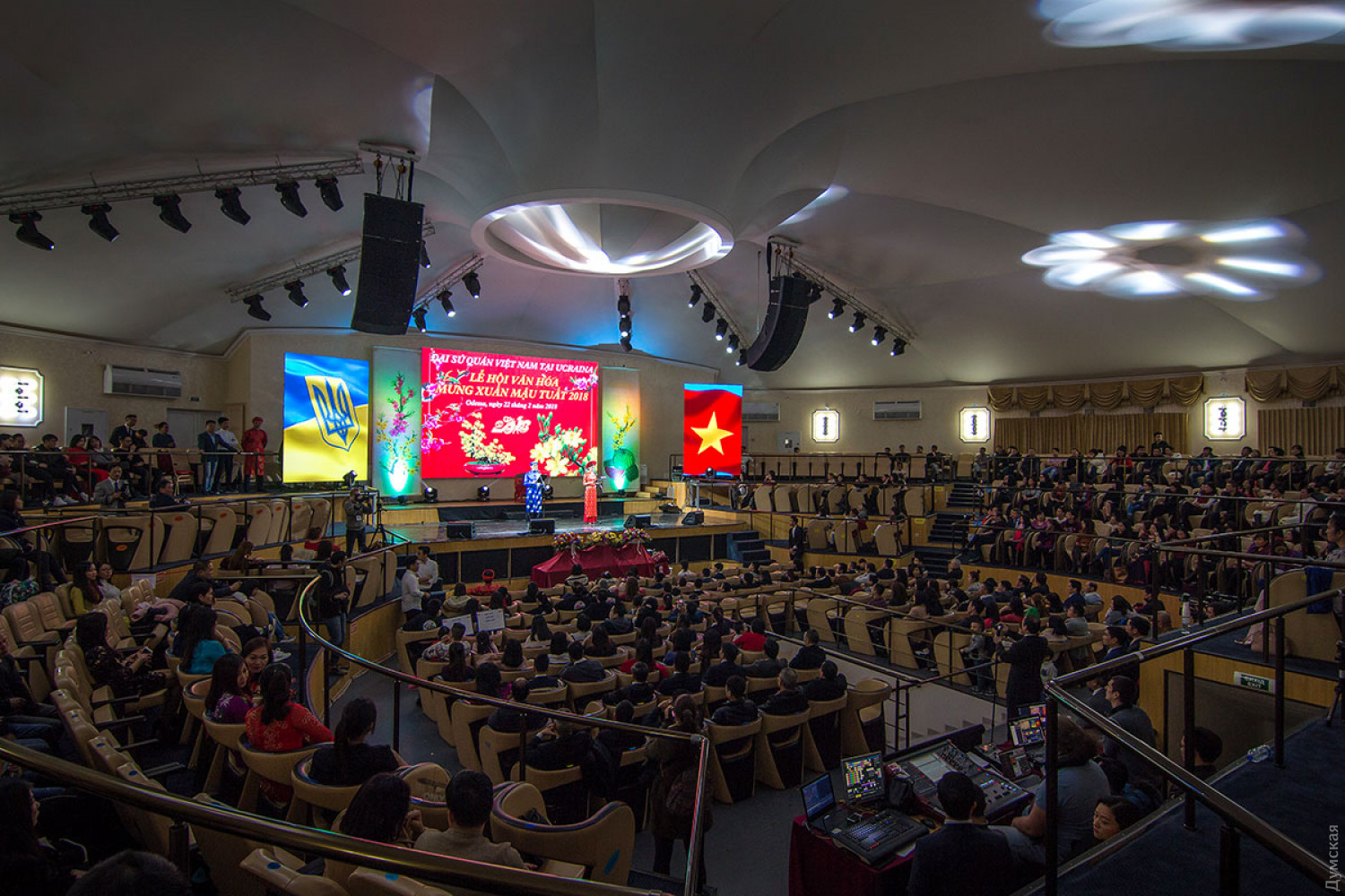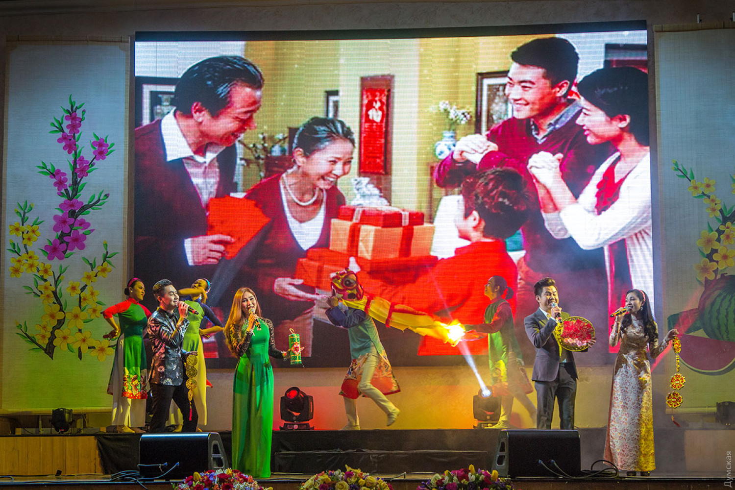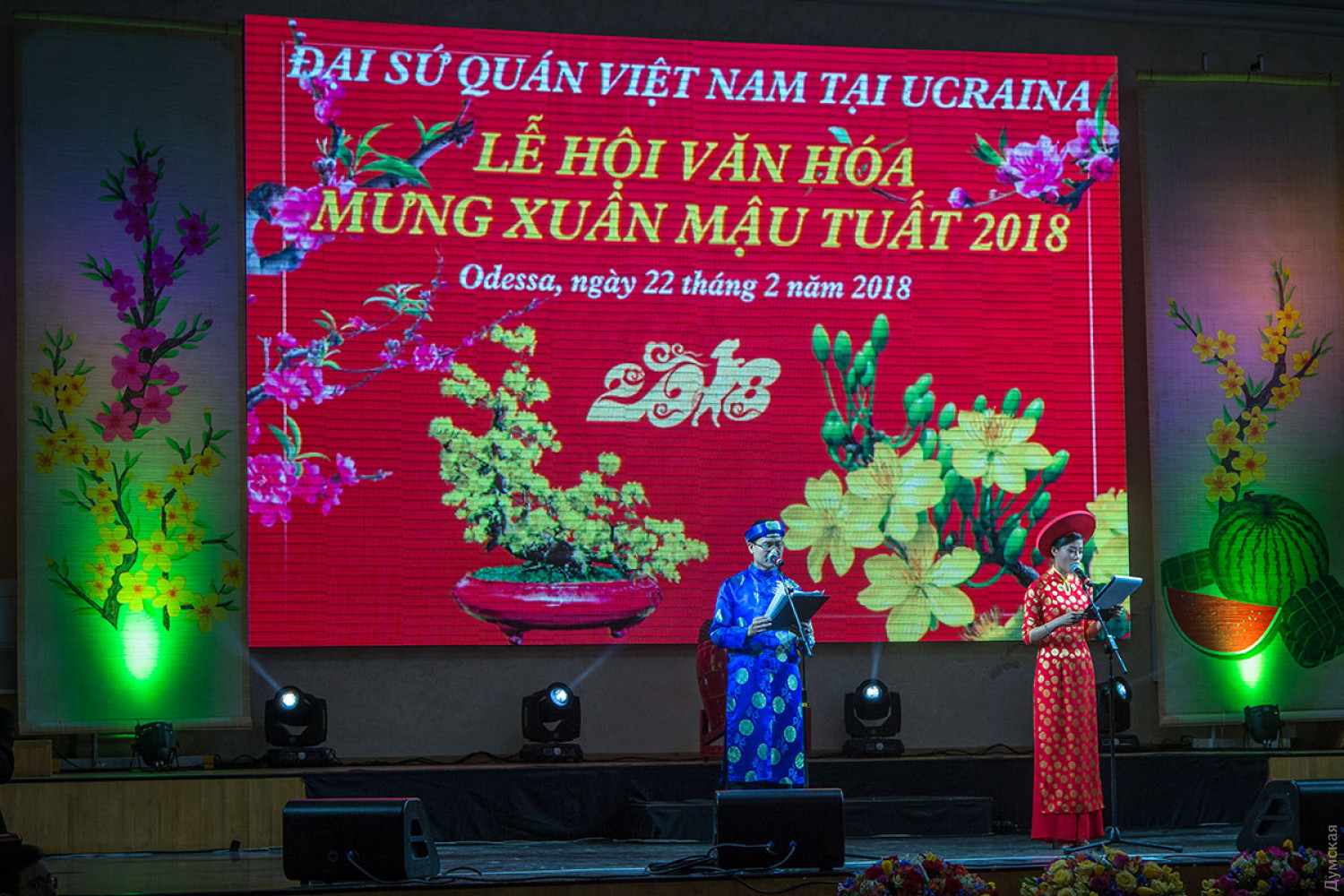 Вьетнамская диаспора Одессы, являющаяся самой многочисленной в Украине, отмечает наступление лунного Нового года. Во Вьетнаме этот праздник называется Тет нгуен дан, что переводится как «праздник первого утра». Сам Тет наступил еще 16 февраля, но празднества будут продолжаться еще несколько дней. Так, новогодний концерт прошел вчера в концерт-холле «Одесса». На нем присутствовал чрезвычайный и полномочный посол Социалистической Республики Вьетнам в Украине Нгуен Ань Туан. Дипломат лично дал старт празднику, подыграв на специальном барабане танцорам в костюмах дракона.