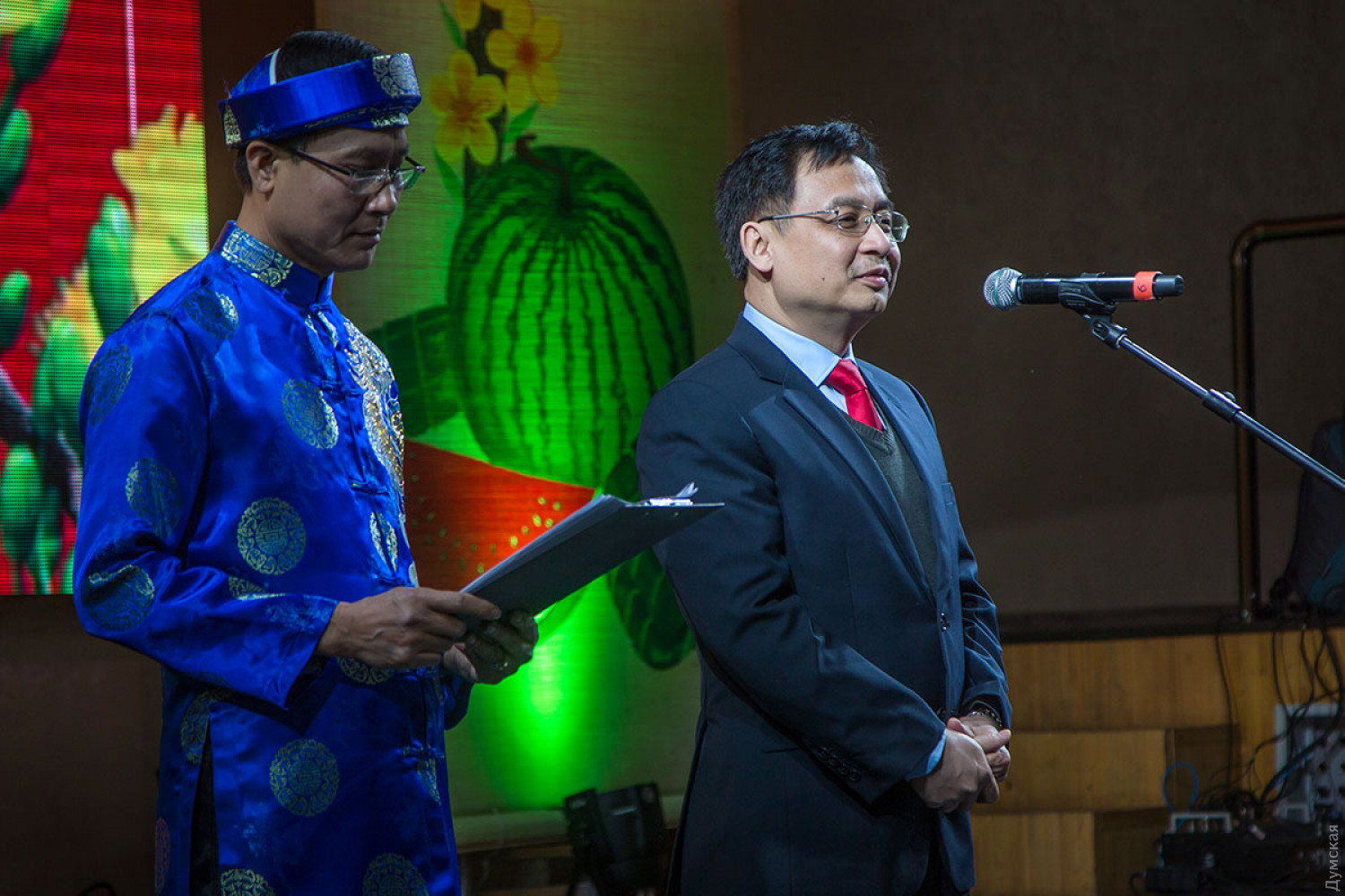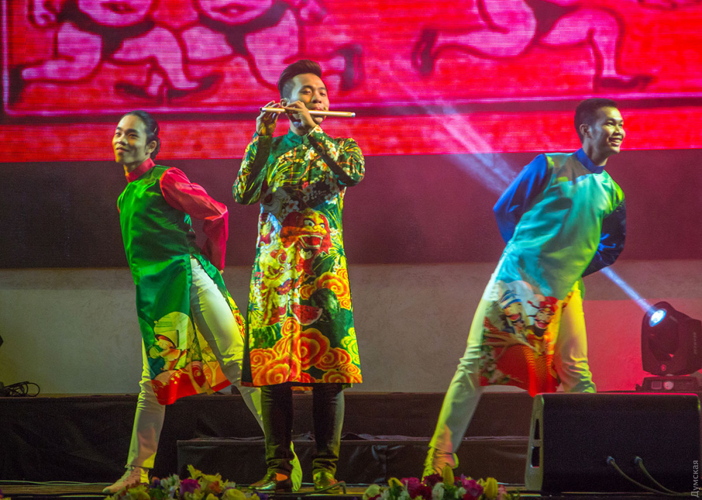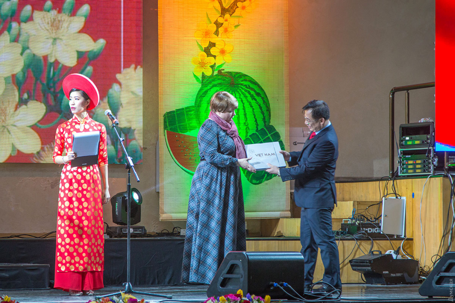 Вьетнамская диаспора Одессы, являющаяся самой многочисленной в Украине, отмечает наступление лунного Нового года. Во Вьетнаме этот праздник называется Тет нгуен дан, что переводится как «праздник первого утра». Сам Тет наступил еще 16 февраля, но празднества будут продолжаться еще несколько дней. Так, новогодний концерт прошел вчера в концерт-холле «Одесса». На нем присутствовал чрезвычайный и полномочный посол Социалистической Республики Вьетнам в Украине Нгуен Ань Туан. Дипломат лично дал старт празднику, подыграв на специальном барабане танцорам в костюмах дракона.