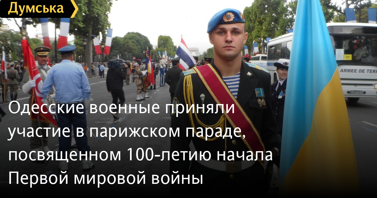 Одесские военные приняли участие в парижском параде, посвященном 100-летию начала Первой мировой войныИз Парижа в Одессу вернулась группа военнослужащих Военной академии, которые представляли Украину на параде, посвященном 100-летию начала Первой мировой войны Как сообщает региональный медиа-центр Минобороны, в столице Французской Республики украинские военные провели 10 дней, ежедневно проводя репетиции на Елисейских полях. «Делегацию возглавлял исполняющий обязанности начальника академии, генерал-майор Олег Гуляк, а кроме него, в ее состав входило семь человек из числа курсантов и военных музыкантов вуза. Нас разместили на военной базе в пригороде Парижа — Версале-Сатори. К военному параду мы готовились интенсивно, хорошо осознавая, что нам выпала большая честь — представлять на нем нашу Украину», — отметил преподаватель кафедры боевого применения вооружения и военной техники Военной академии, подполковник Николай Коновалюк По словам офицера, сам парад состоялся 14 июля в Париже с участием представителей более 60 стран мира, авиационной техники и наземных транспортных средств. «Я, курсанты Вадим Попик и Назар Гудзенко были в составе знаменной группы и торжественным маршем несли Государственный флаг Украины. А курсанты Владислав Машковский, Михаил Дубовик, младший сержант Елена Хряпина и служащая ВС Украины Тамара Ленская были задействованы в театрализованной части парада», — рассказал Коновалюк. За время пребывания во Франции украинские военные также ознакомились со многими культурно-историческими достопримечательностями. В частности, им выпала честь увидеть знаменитую Эйфелеву башню, Триумфальную арку, посетить Собор Парижской Богоматери, Лувр и присутствовать на авиашоу в аэропорту Ле-Бурже. СМЕРТЬ РОССИЙСКИМ ОККУПАНТАМ! Заметили ошибку? Выделяйте слова с ошибкой и нажимайте control-enter |