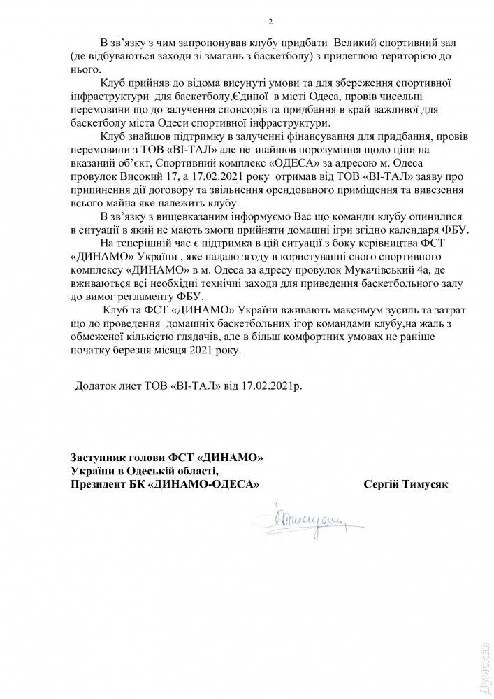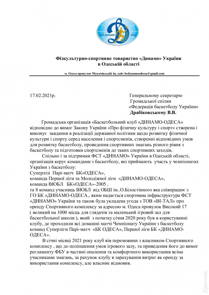 Компания «ВІ-ТАЛ», которой принадлежит спорткомплекс «Краян» в Высоком переулке, расторгла договор аренды с баскетбольным клубом «Одесса», обязав последний освободить помещение. Об этом идет речь в письме президента команды Сергея Тымусяка в Федерацию баскетбола Украины. Как отмечается в документе, в январе клуб вел переговоры с собственником спорткомплекса относительно улучшения условий игрового зала и приведения его в соответствие с требованиями регламента ФБУ в части отопления. «Одесса» предложила сделать это за свои деньги, но засчитать расходы как арендную плату, однако предприниматели отказали и предложили баскетболистам выкупить зал. Клуб принял к сведению выдвинутые условия, нашел спонсоров, но не смог договориться с «ВІ-ТАЛ» о цене. Наконец вчера, 17 февраля, компания направила спортсменам извещение о прекращении действия договора и освобождении арендуемого помещения. «В связи с этим информируем вас, что команды клуба («Одесса» и «Динамо-Одесса») оказались в ситуации, при которой не могут принимать домашние игры согласно календарю ФБУ», — пишет Сергей Тымусяк. По его словам, клуб обратился за помощью к физкультурно-спортивному обществу «Динамо», которое дало согласие на использование своего спортивного комплекса в Мукачевском переулке. «Сейчас принимаются все необходимые технические меры для приведения баскетбольного зала в соответствие с требованиями регламента Федерации», — отмечает президент «Одессы». Он добавил, что домашние игры обе команды смогут проводить не раньше начала марта 2021 года, причем с ограниченным количеством зрителей. СМЕРТЬ РОСІЙСЬКИМ ОКУПАНТАМ! Помітили помилку? Виділяйте слова з помилкою та натискайте control-enter Новини по цій темі: |