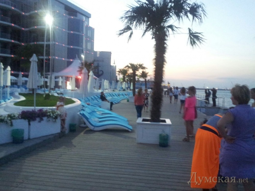 Зона платных услуг на отданной частникам набережной пляжа «Ланжерон» продолжает расширяться. Как сообщают читатели «Думской», теперь новомодные шезлонги стоят вдоль набережной на деревянном настиле, где обычно располагались люди на подстилках. Отметим, раньше зона платных услуг ограничивалась территорией с гранитным покрытием. Стоимость аренды топчана по-прежнему составляет 100 гривен. Тем временем ограждение над морем все еще не заменили, а из воды возле пирса торчит… рельса. Напомним, в начале июля мэр Одессы Алексей Костусев сообщал, что морское дно в районе набережной уже «обследуют на наличие посторонних предметов». Фото — Петр Ионов СМЕРТЬ РОСІЙСЬКИМ ОКУПАНТАМ! Помітили помилку? Виділяйте слова з помилкою та натискайте control-enter Новини по цій темі: 30 травня 2020: Бизнес на песке: среди арендаторов одесских пляжей - крупные бизнесмены, бывшие таможенники и множество подставных лиц 14 листопада 2019: Идеальный шторм на одесском пляже: волны взбили в пену осеннее море (фоторепортаж) |