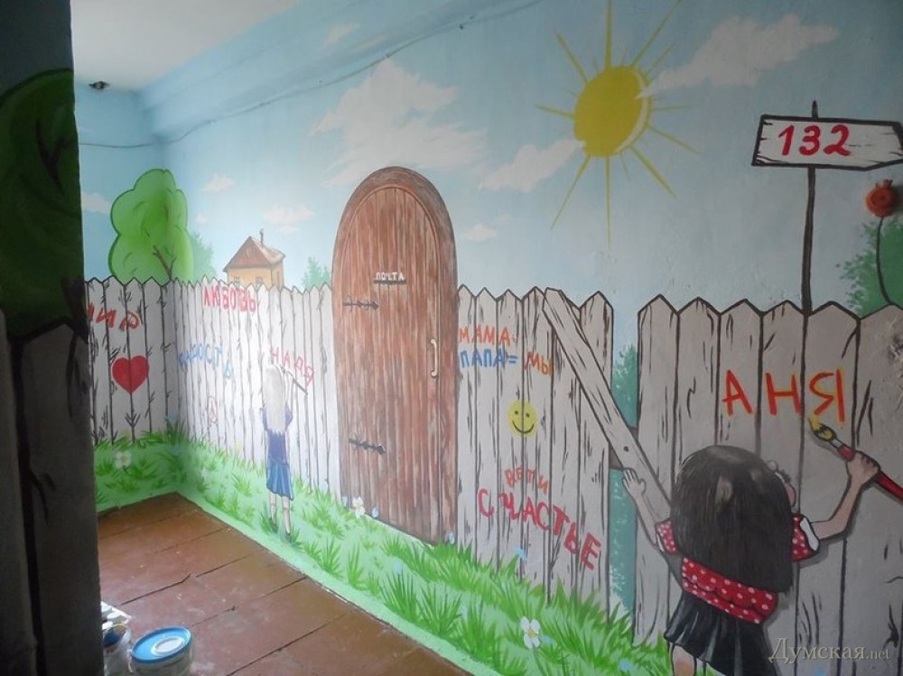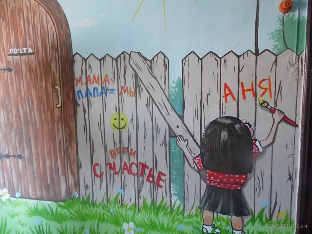 Одесский художник-граффитист Святослав Лаврусенко помог жильцам одной из высоток на улице Заболотного разрисовать лестничную площадку на их этаже. Теперь вместо мрачных стен типовой многоэтажки там можно увидеть яркое граффити. Идея украсить таким образом этаж своего дома пришла в голову Александру Новаковскому. Для воплощения задумки он обратился к Святославу Лаврусенко. Поначалу художник удивился такой просьбе, но согласился помочь, когда узнал, что граффити — подарок для дочерей Александра Новаковского Ани и Нади и для маленькой соседки Даши. На стенах художник изобразил деревянный забор, который нарисованные дети расписывают словами «любовь», «радость», «семья», «мир». За оградой виднеется сад и крыша дома. Александр выполненной работой остался доволен. «Теперь у нас не просто красивый этаж, а он самый красивый и солнечный во всей нашей Одессе», — уверен он. СМЕРТЬ РОСІЙСЬКИМ ОКУПАНТАМ! Помітили помилку? Виділяйте слова з помилкою та натискайте control-enter |