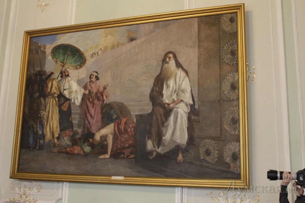 Прежде всего, рассказала заведующая отделом искусства Востока, Татьяна Балановская, стены музейных залов пришлось перекрашивать. Во время ремонта, по заказу облуправления охраны памятников, их сделали кричаще-бордовыми, чему музейщики были неприятно. Ведь на таком фоне невозможно показывать произведения искусства! Удалось настоять, чтобы стены перекрасили в пастельные тона, и то еще пришлось уплатить по 90 гривен за каждый образчик цвета. Зато теперь не стыдно повесить на стену, например, картину французского художника с одесскими корнями Поля Леруа «Аман и Мордехай». А также имеющие огромную ценность картины кисти Франса Хальса «Святой Лука» (по мотивам исчезновения этого полотна с выставки в музее имени Пушкина в Москве был снят известный советский фильм «Возвращение Святого Луки») и «Святой Матфей».