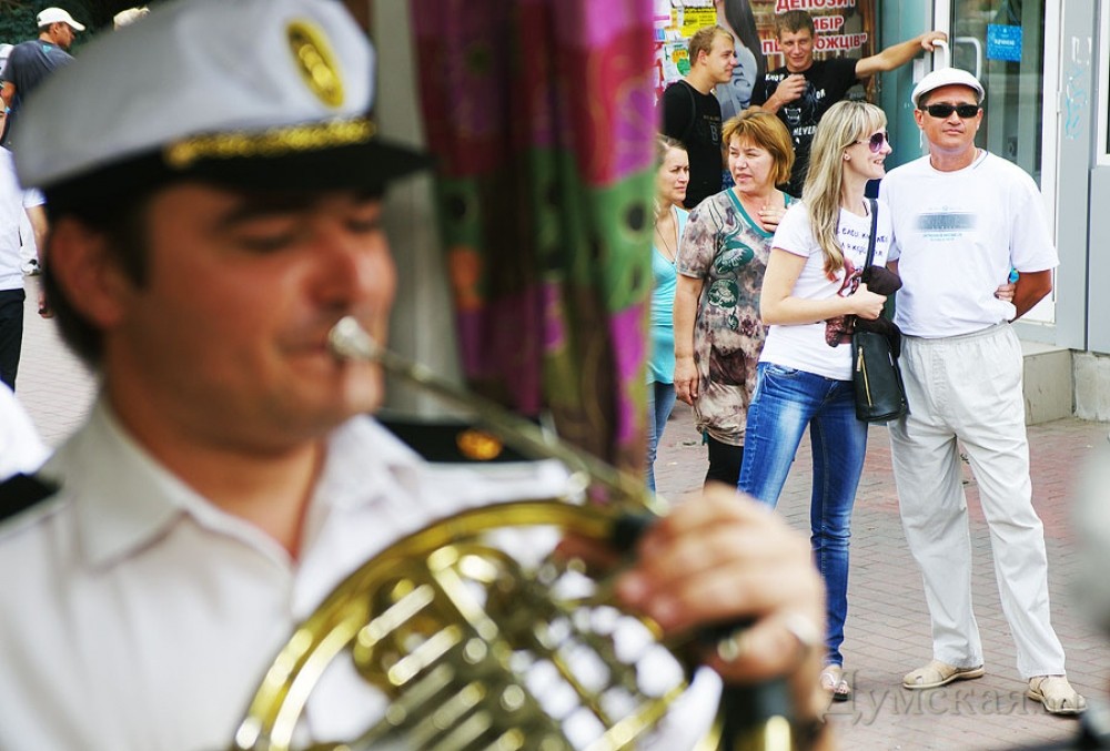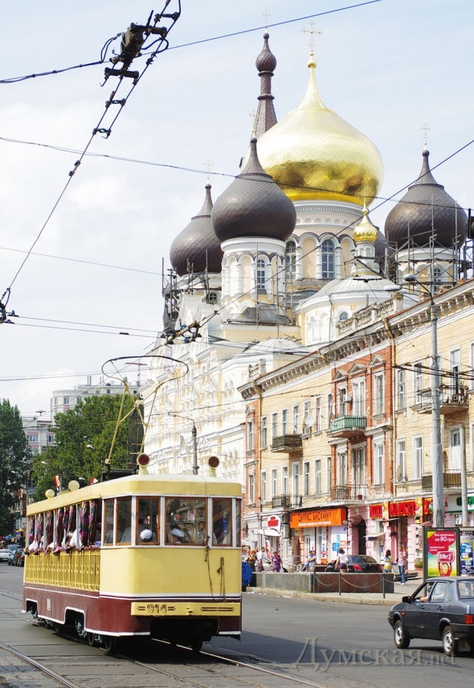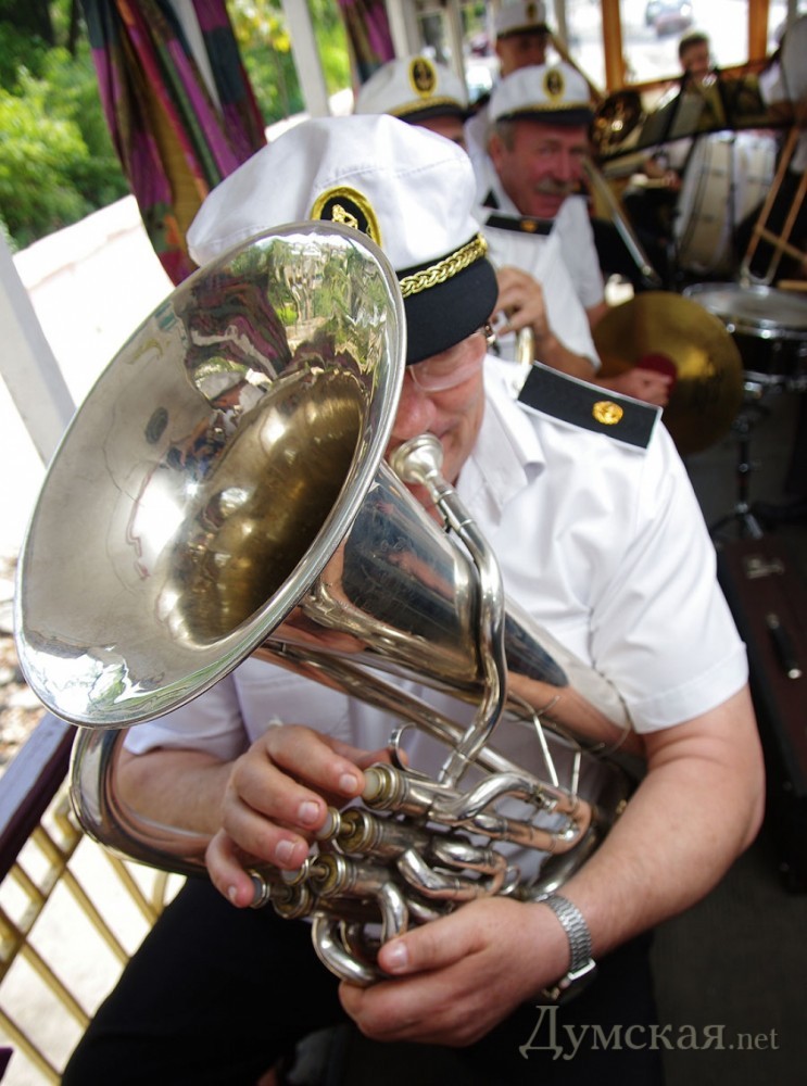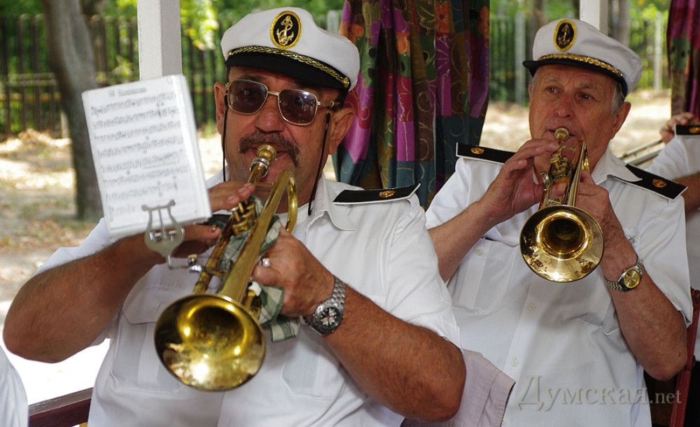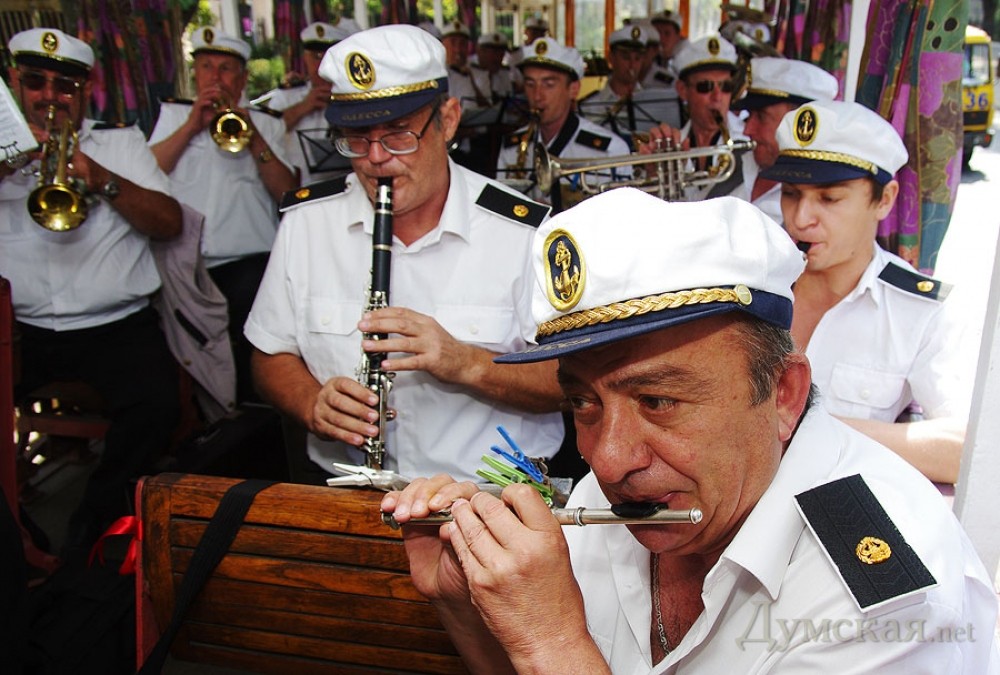 Несколько раз в году знаменитый прогулочный «ретро-трамвай», который в теплое время года курсирует по пятому маршруту от Аркадии до Староконки, становится музыкальным и радует ухо горожан и гостей города то джазом, то классикой, то одесским шансоном. Как правило, это происходит на День города. Сегодня старенький трамвай в очередной раз превратился в мобильную концертную площадку. «Думская» решила прокатиться на колбасе ретро-«пятерочки» и выяснить, почем билет и сильно ли трясет на главном музыкальном маршруте Одессы. Сам агрегат – на удивление живучий МТВ-82, обычная советская модель 1950-х годов. Конкретно этот вагон построили в 1954 году на Рижском вагоностроительном заводе и передали в одесское трамвайное депо им. Ленина, где он прослужил без малого десять лет. Пожар, случившийся в депо в феврале 64-го, испепелил и наш трамвайчик, после чего его восстановили на ремзаводе и снова выпустили перевозить пассажиров. В 1978-м году вагон переквалифицировался в учебный, а в 1980-м его полностью переделали, стилизовав под «пульман» начала века, и начали использовать в качестве открытого экскурсионно-прогулочного трамвая. Сегодня, спустя почти четверть века, вагон №914 по-прежнему катает в сезон туристов, обслуживает спецзаказы (вроде свадеб и киносъемок), а по праздникам участвует в культурной программе на правах одного из «гвоздей». По словам водителя железного старичка Виталия, трамвай очень неприхотлив и надежен, к тому же легко ремонтируется. Примитивная, по нынешним меркам, система управления позволяет вагоновожатому получать от работы больше удовольствия, чем проблем. «Я люблю этот трамвай, — говорит водитель с 25-летним стажем. — И пассажиры любят.Движение очень плавное, это не поездка, а прогулка. Абсолютно никакого негатива: едешь себе спокойно, солнце греет, ветерок обдувает. Жаль только, что вагон летний, и использовать его можно максимум пять месяцев в году». Но сегодня главная изюминка старинного трамвая — не в его технических характеристиках и внешних данных, а в музыке. В День города за звуковую часть отвечает муниципальный театр духовой музыки имени А. Салика под управлением Михаила Дзевика. Каждую пятницу оркестр выступает в городском саду (куда, пользуясь случаем, дирижер и приглашает читателей «Думской»), а 2 сентября грузится на ретро-трамвай и колесит по улицам, развлекая народ тематическими мелодиями. Сегодня День города, а не День победы, посему и музыка должна быть соответствующей: «Хава нагила», «Живи, моя Одесса», «У Черного моря», «Тумбалалайка», «Ты одессит, Мишка» и другие, знакомые каждому горожанину вещи. Сами музыканты выступление в трамвае воспринимают больше как почетную обязанность, чем как возможность показать класс. Причина тому совершенно тривиальна: для шоу ретро-транспорт совершенно не приспособлен. «На этом трамвае мы катаемся раз в год, на День города, — рассказывает Сергей Дзевик. — На джазовых фестивалях, например, тут дирижирует Юра Кузнецов. На День победы может гарнизонный оркестр поездить. Играть в трамвае неудобно: мундштуки бьют по лицу, очень тесно, партитуры постоянно норовят упасть. В общем, на ходу качественно исполнять музыку попросту невозможно. Поэтому мы играем на остановках, а в движении у нас получается передышка». Есть у оркестрантов и другие печали. Старики сетуют на погоду, на