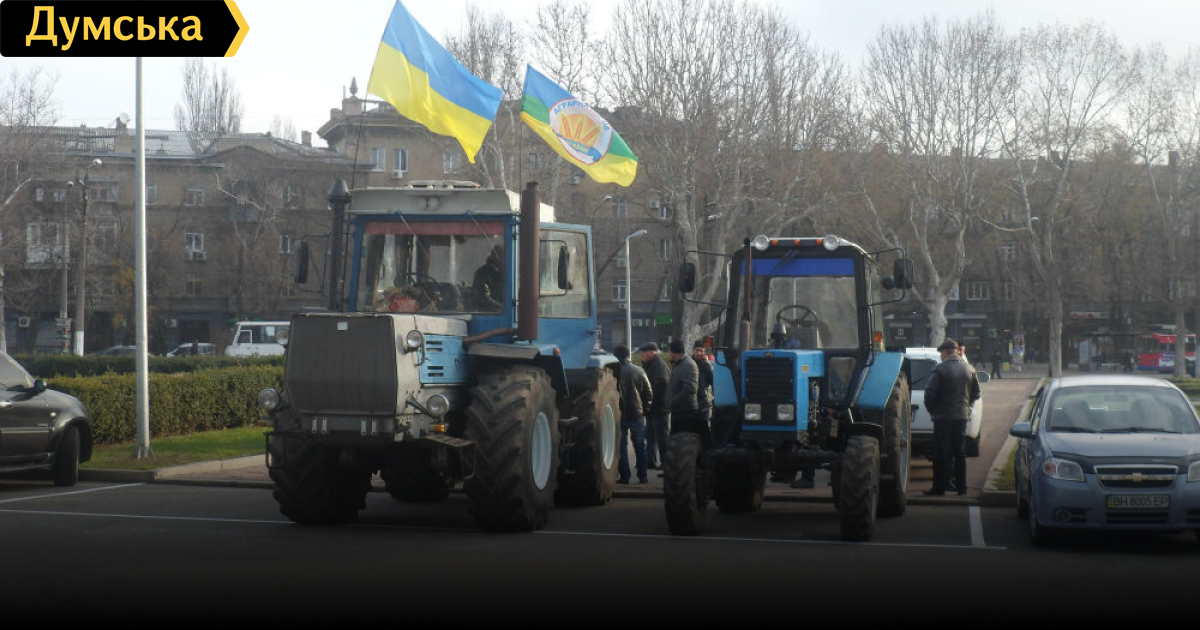 Митингующие пригнали к зданию Одесского облсовета два трактора
