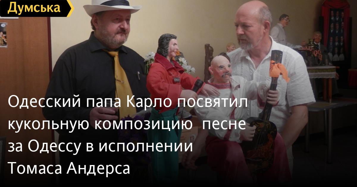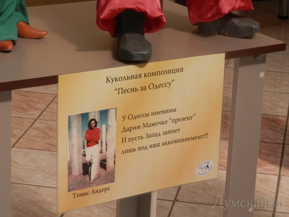 Одесский «папа Карло» посвятил кукольную композицию песне «за Одессу» в исполнении… Томаса АндерсаКукольник Михаил Коломей, больше известный как «одесский папа Карло», разродился очередным творением из гипса. На этот раз свою композицию он назвал «Песнь за Одессу» и посвятил Дню города. Одесские песни, в представлении Коломея, олицетворяют украинский казак и… солист группы Modern Talking Томас Андрес. На создание скульптурного дуэта у мастера ушло более трех месяцев – фигуры изготавливались из специально разработанного композитного материала, в состав которого входят гипс, глина и папье-маше. А вот сама идея у автора родилась, можно сказать, спонтанно – всему виной давнее увлечение Коломея репертуаром немецкой группы. «Мне с молодости нравились их песни. Кроме того, Томас Андерс уже почти одессит – он был у нас восемь раз, больше других зарубежных звезд, и успел спеть песню Александры Пахмутовой «Нежность». Есть идея предложить ему исполнить какую-то одесскую песню», — поясняет Михаил. Казак же, по его словам, — типичный представитель украинского народа, который не «позволит заезжим звездам подтираться национальным флагом» (намек на выходку группы Bloodhound Gang, — Реб.). При этом на гитаре, которую держит запорожец, небрежно повязанная оранжевая ленточка. Скульптор утверждает, что это «мягкая критика излишней и жесткой украинизации». «А вообще, эта работа — как черный квадрат Малевича. Каждый пусть понимает ее, как считает нужным», — говорит Михаил Коломей. На презентации кукол побывали поклонники таланта Томаса Андерса, в частности председатель одесского фан-клуба группы Евгений Низов и признанный фанат группы, глава регионального отделения Союза журналистов Украины Юрий Работин. Низов попытался было превратить встречу почитателей таланта Коломея в слет любителей Андерса, но был вовремя остановлен кукольником. В планах Михаила Коломея – вылепить скульптуры известных одесских писателей. СМЕРТЬ РОССИЙСКИМ ОККУПАНТАМ! Заметили ошибку? Выделяйте слова с ошибкой и нажимайте control-enter |