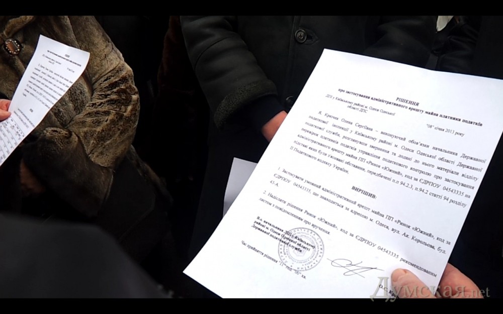 Демидов утверждает, что 8 января налоговая администрация Киевского района наложила условный арест на имущество и полный арест на счета частного предприятия «Рынок Южный». Юрист ЧП добавил, что суд уже признал такие меры незаконными.