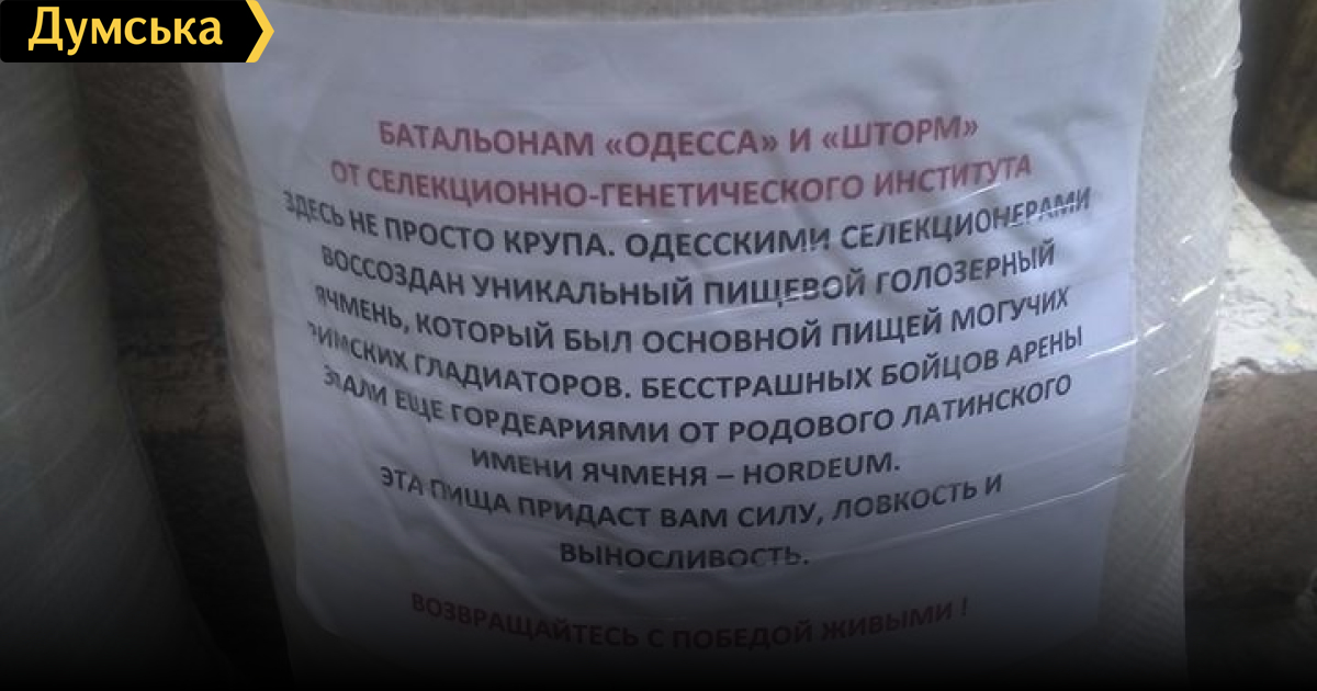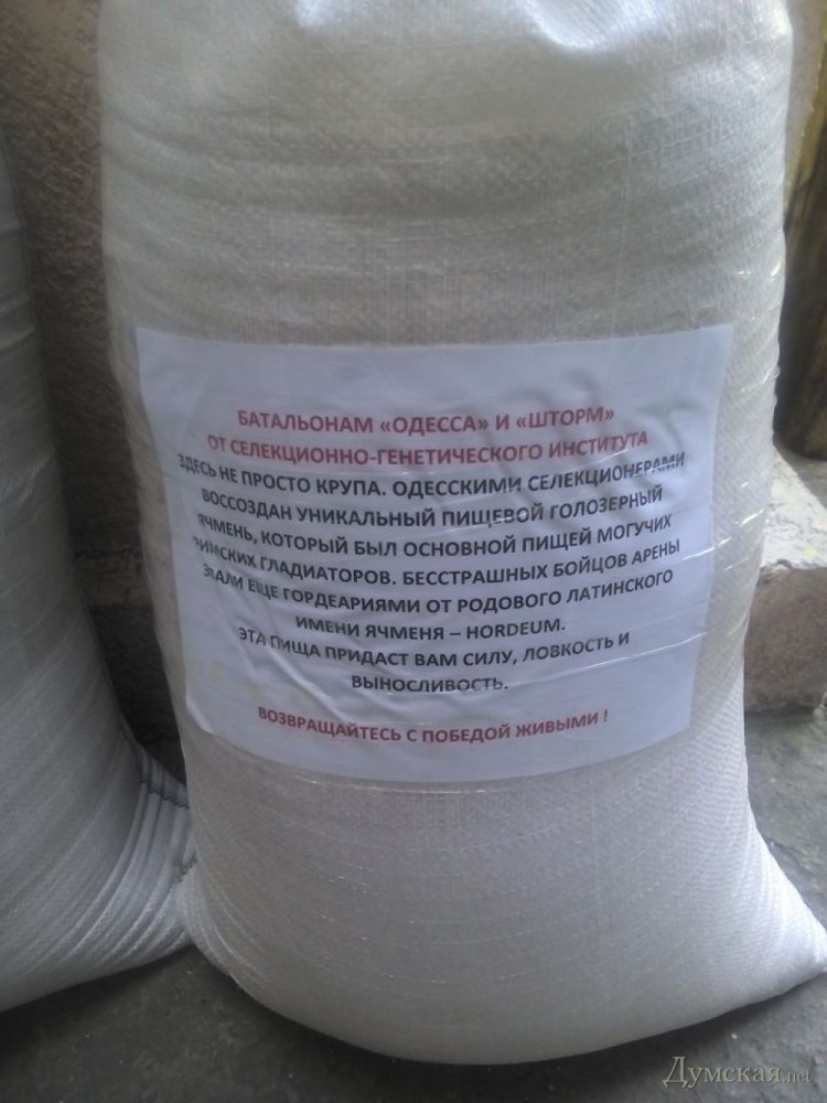 Одесский селекционно-генетический институт передал в зону АТО мешки с выведенным специалистами учреждения элитным голозерным ячменем, который, как утверждается, был основной пищей римских гладиаторов.