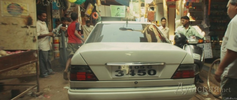 Кадр из фильма "Миллионер из трущоб", машины без значка
