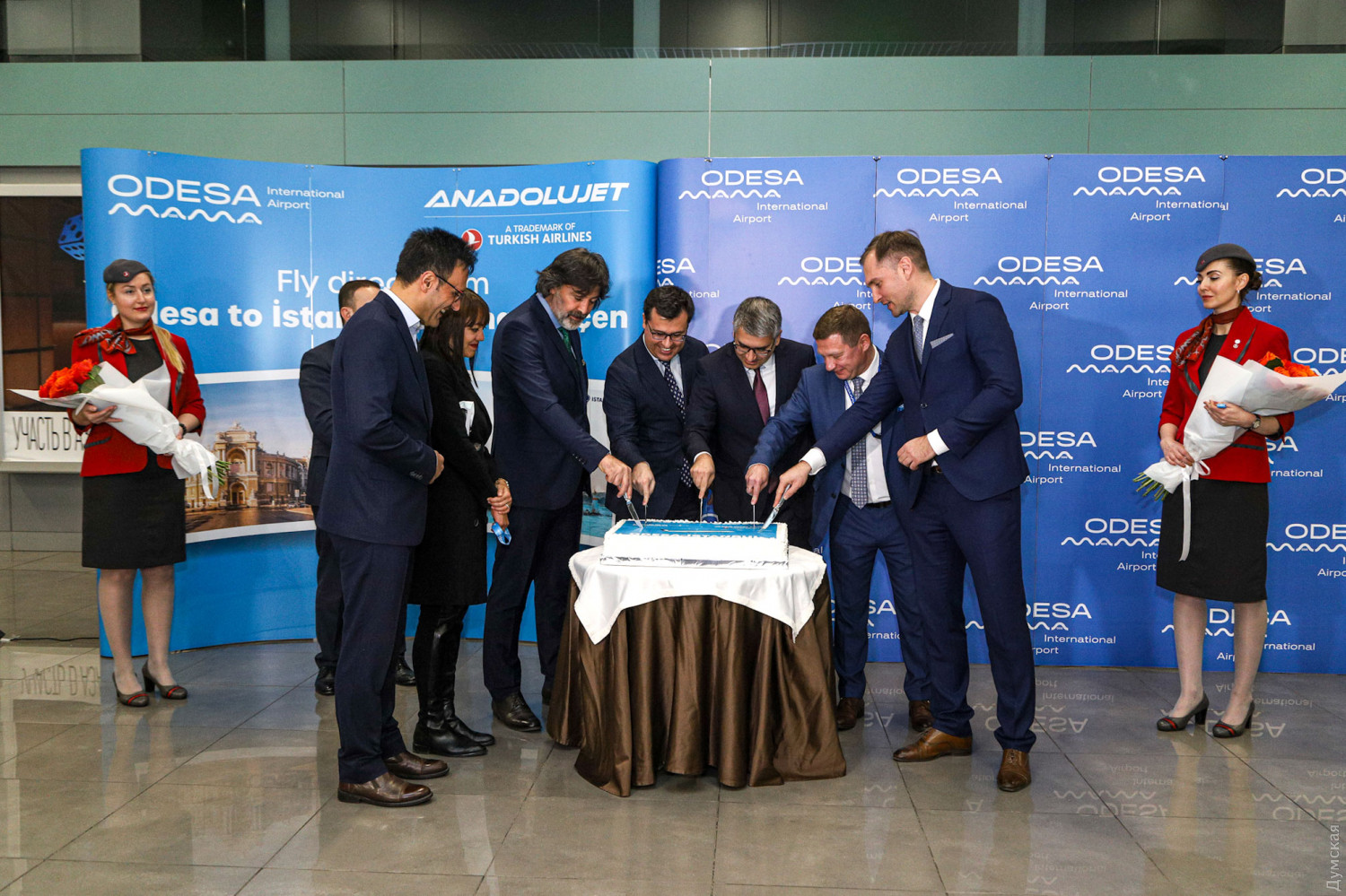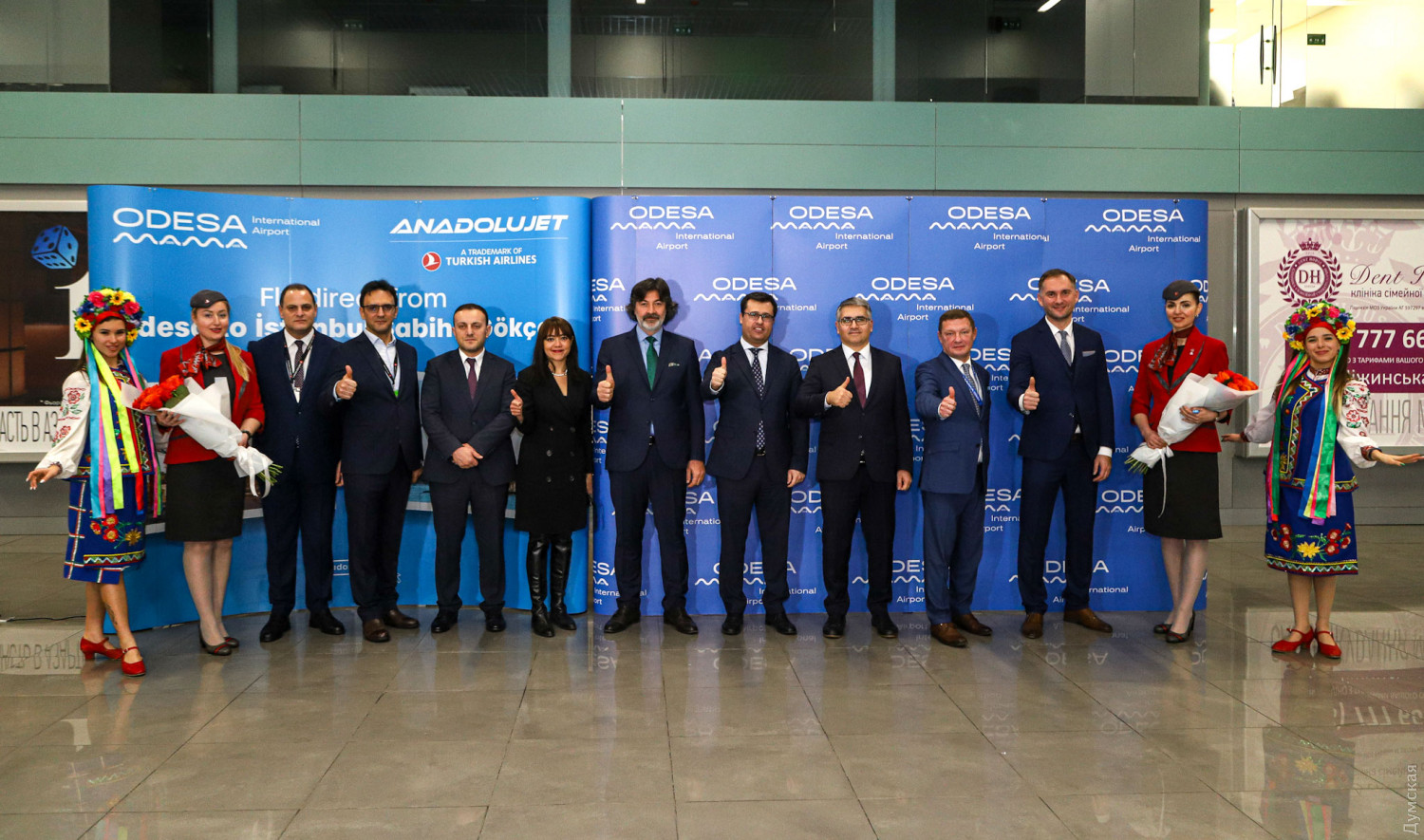 Руководство AnadoluJet по традиции встретили караваем, праздничным тортом и музыкальным выступлением. Не осталась в долгу и турецкая компания — коллекция одесского аэропорта пополнилась миниатюрной моделью самолета с логотипом авиаперевозчика и необычными часами в виде турбины двигателя.
