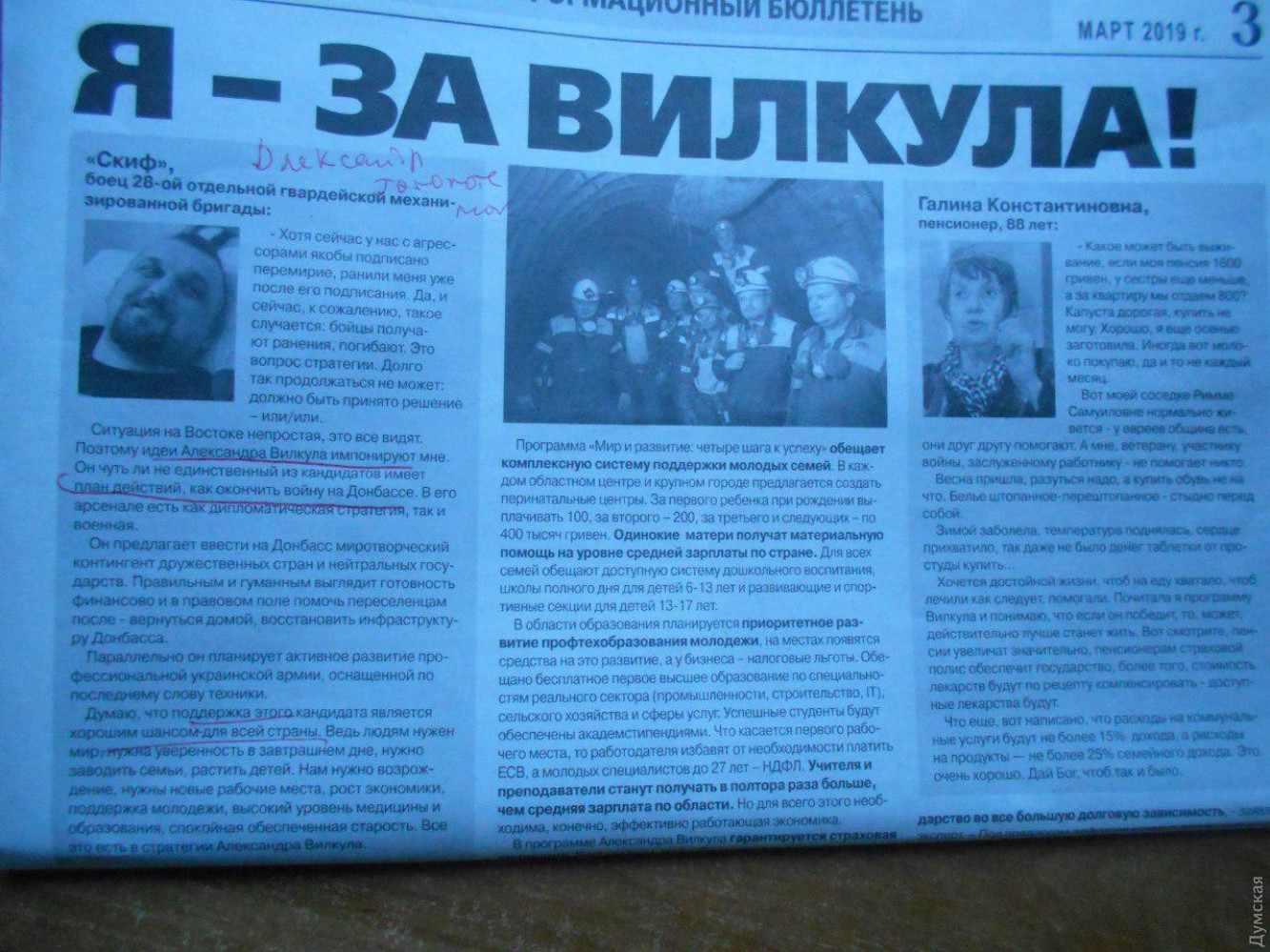 Дело в том, что в Киеве распространяется агитационная газета Вилкула, на страницах которой присутствует фотография Александра, сделанная в одесском госпитале, где он лечился после ранения, его позывной и якобы сделанное им заявление в поддержку кандидата.