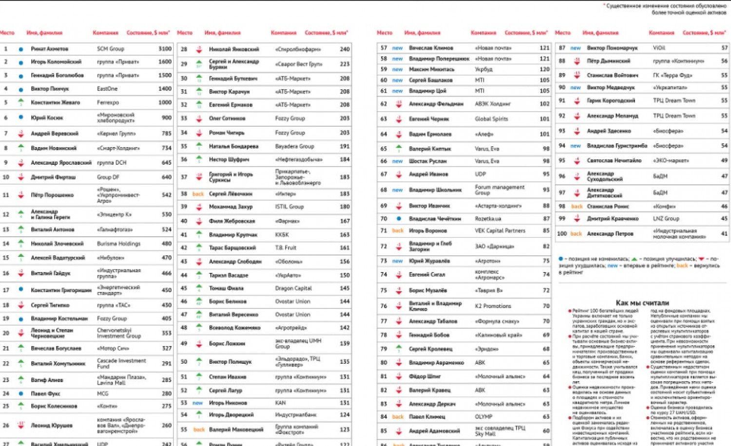 Одесский бизнесмен вошел в ТОП-100 украинских богачей, хоть и потерял восемь позиций в рейтингеСовладелец сети супермаркетов «Таврия В» Борис Музалев вошел в ТОП-100 самых богатых людей Украины. Рейтинг составил журнал «Фокус», который отдал миллионеру 75 место. Борис Музалев в прошлом году владел состоянием в 85 миллионов долларов США, а в этом уже 72 миллиона и в прошлом году он занимал 67 место. «Финансовые показатели «Таврии В» за второй квартал 2017 года неутешительные: чистая прибыль предприятия сократилась более чем в 2 раза по сравнению с аналогичными показателями 2016 года — до 17,5 млн грн, а чистый доход уменьшился на 15,5%, до 651,8 млн грн», — отмечает издание. В то же время второй одесский бизнесмен — Леонид Климов, который занимал 71 позицию в рейтинге, в нынешний ТОП-100 уже не попал. Лидерами рейтинга, как и в прошлом году, являются Ринат Ахметов (1 место), Игорь Коломойский (2 место) и Геннадий Боголюбов (3 место). При этом состояние Рината Ахметова оценивается в 3,1 миллиардов долларов США, а в прошлом году — 2,2 миллиардов долларов. Игорь Коломойский в этом году «стоит» 1,6 миллиардов против 1,2 в прошлом, а Геннадий Боголюбов 1,5 против 1,2 миллиардов в прошлом году.