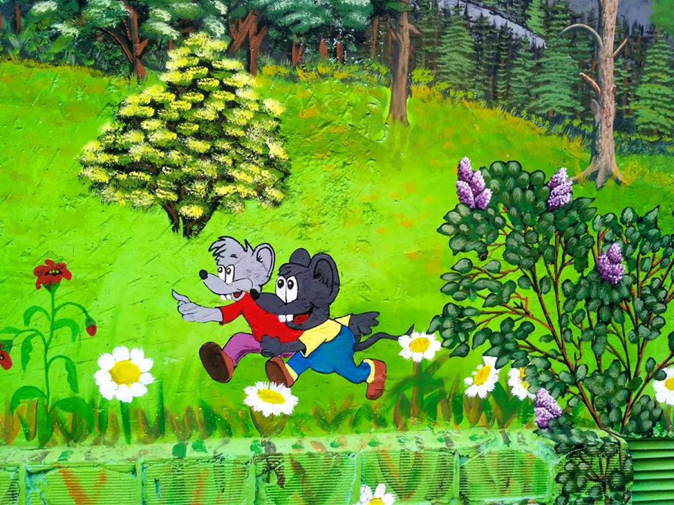 На стене трансформаторной будки во дворе дома №26 по улице Бреуса появился мурал со сказочными персонажами Эдуарда Успенского, Александра Милна, Астрид Линдгрен, а также советских мультфильмов. Пока расписана только одна стена, но автор работы, художник Сергей Дамбовский рассказал «Думской», что это только начало и в дальнейшем рисунки покроют все строение.