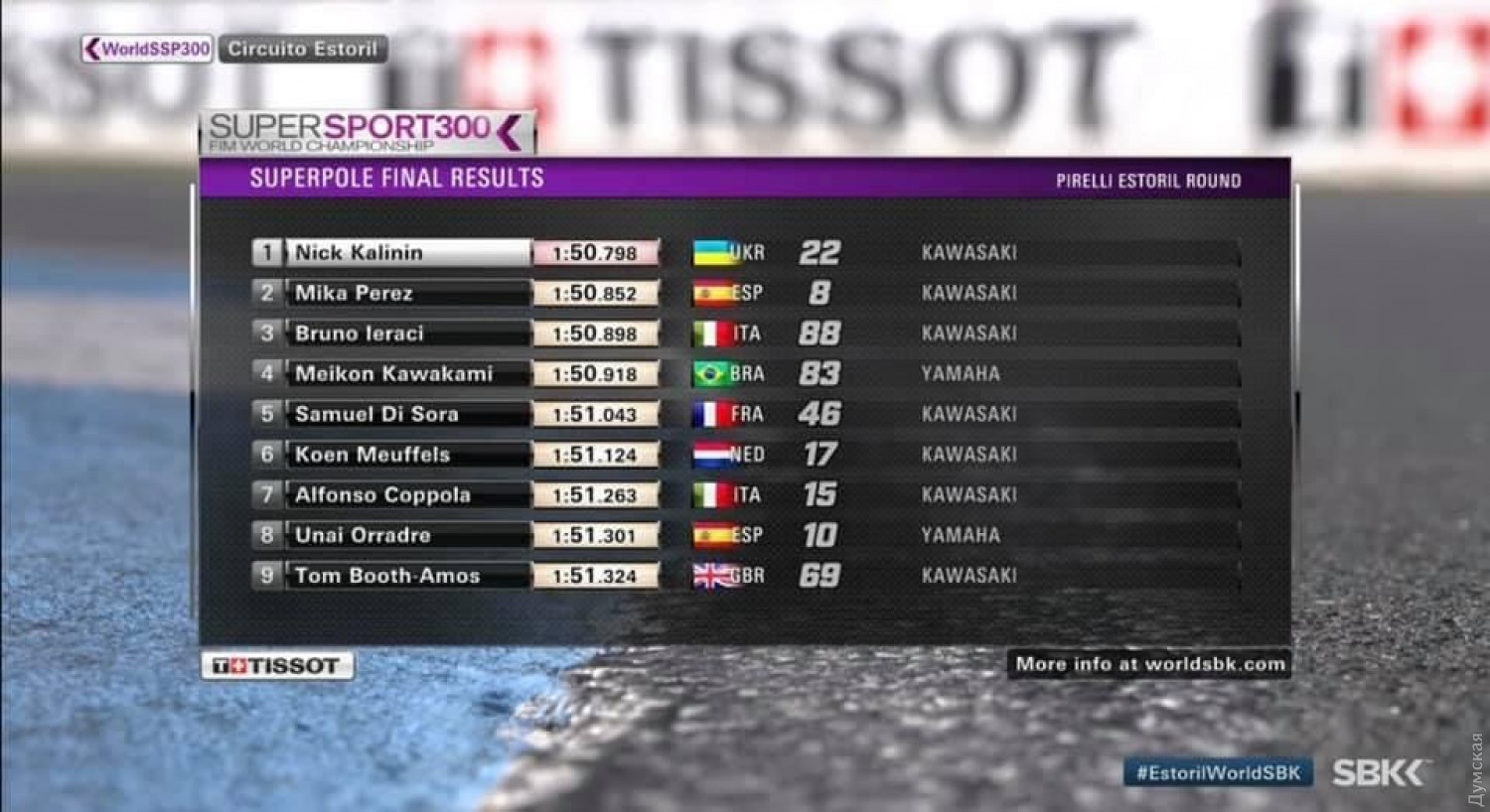 Одесский мотогонщик впервые в истории Украины выиграл гонку суперпоул на чемпионате мира в Португалии21-летний мотогонщик из Одессы Никита Калинин стал победителем португальского этапа чемпионата мира по супербайку — кольцевым гонкам на мотоциклах, в основе которых лежат серийные конструкции, находящиеся в свободной продаже. Спортсмену удалось финишировать первым, хотя на тренировке он показал третий результат. Никита — первый в истории независимой Украины спортсмен, который добыл золото по суперпоулу. Он представлял команду Battley-RT Motorsports by SKM-Kawasaki. СМЕРТЬ РОСІЙСЬКИМ ОКУПАНТАМ! Помітили помилку? Виділяйте слова з помилкою та натискайте control-enter |