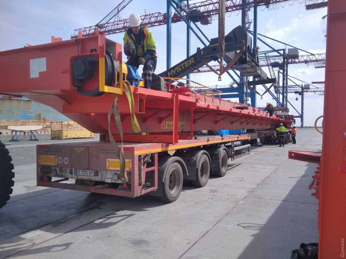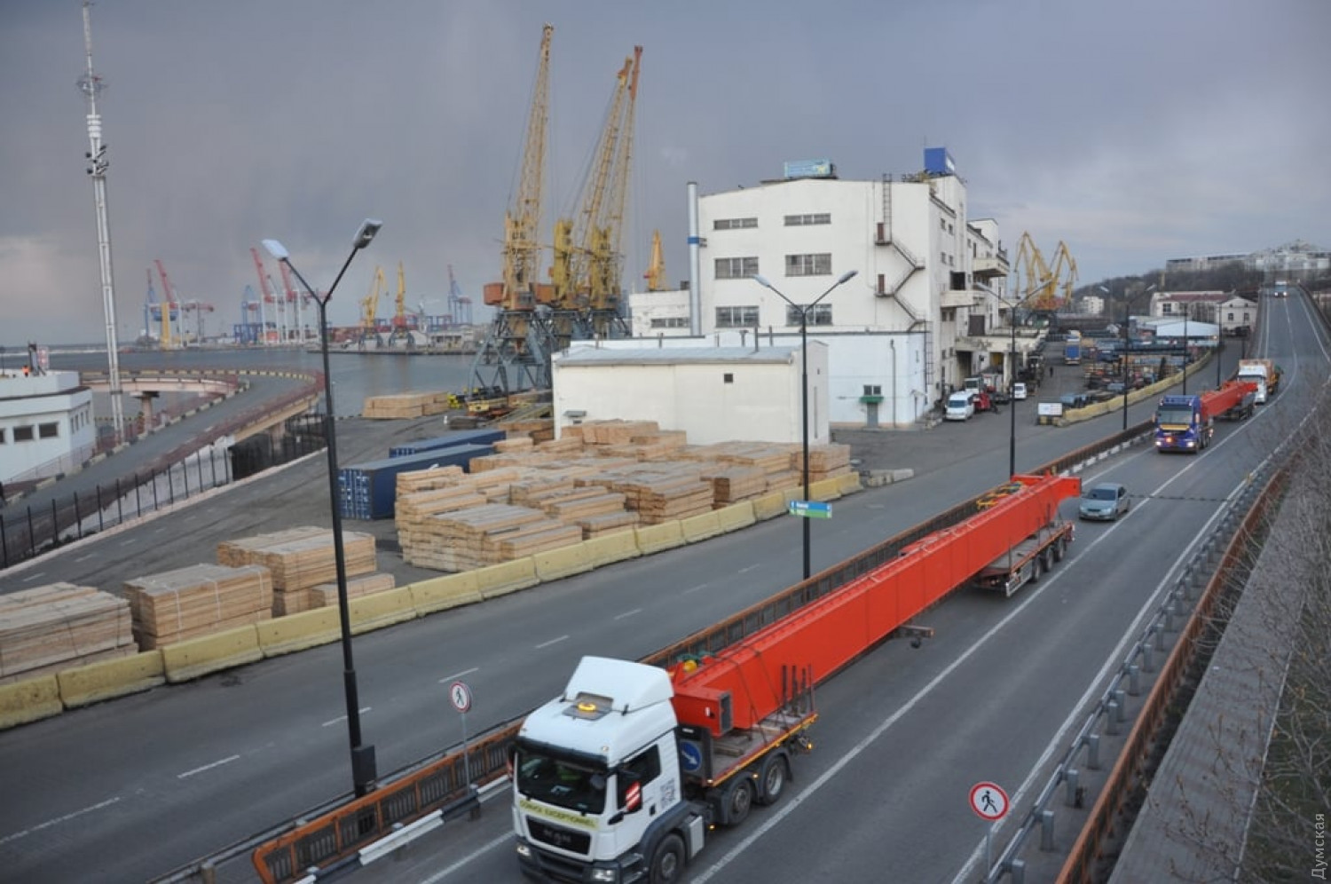 Специалисты ГП «КТО», которое оперирует причалом 1-к контейнерного терминала Одесского морского порта, разгрузили судно, которое доставило крупногабаритные комплектующие мостового крана. В пресс-службе порта сообщили, что такую грузовую операцию в порту совершили впервые за 20 лет. С прибывшего специализированного судна UNISTREAM (флаг Антигуа и Барбуда), кроме прочих комплектующих, нужно было выгрузить две массивные балки. Масса каждой составляет 38 тонн, длинна 29 метров, а высота два метра. Тягач с балкой, закрепленной на прицепе, получился длиной 33 метра. «Для того, чтобы провезти этот груз автодорогами порта, был разработан специальный план, а накануне операции проведено тестовое прохождение маршрута автопоездом без груза, — прокомментировал начальник администрации порта Максим Лапай. — Наиболее сложными отрезками по маршруту были заезд на эстакаду и проезд под туннельным мостом микрорайона Пересыпь по территории порта. Благодаря опыту и квалификации наших инженеров по оперативной группе безопасности дорожного движения, операция по сопровождению негабаритных грузов прошла в штатном режиме. Поздно вечером автопоезд в составе трех тягачей с платформами был выведен на Балковскую и передан для дальнейшего сопровождения экипажам полиции». СМЕРТЬ РОСІЙСЬКИМ ОКУПАНТАМ! Помітили помилку? Виділяйте слова з помилкою та натискайте control-enter |