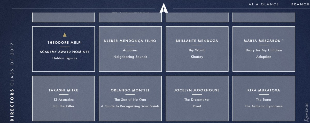Одесский режиссер стала членом Американской киноакадемии и будет выбирать лауреатов «Оскара»Одесский кинорежиссер Кира Муратова пополнила ряды Американской академии кинематографических искусств и наук. Она стала одним из 774 новых участников этой организации. Всего киношных академиков почти 6 тысяч человек. Члены академии ежегодно выбирают тайным голосованием лауреатов кинопремии «Оскар». Муратова вошла в состав гильдии режиссеров, которая вместе со всеми голосует за лучший фильм и решает, кто получит премию за лучшую режиссуру. В приглашении Муратовой стать членом организации упоминаются два ее фильма — «Астенический синдром» и «Настройщик». Первый вышел на экраны в 1989 году. Он удостоен Специального приза жюри МКФ в Берлине «Серебряный медведь» и получил премию Российской академии кинематографических искусств «Ника» за лучший игровой фильм. «Настройщик» (2004) получил главный приз Международного кинофестиваля центрально- и восточноевропейских фильмов goEast в Висбадене и «Нику» за лучшую режиссуру. Напомним, ранее стало известно, что Одесский горсовет намерен присвоить Кире Муратовой звание Почетного гражданина Одессы. СМЕРТЬ РОСІЙСЬКИМ ОКУПАНТАМ! Помітили помилку? Виділяйте слова з помилкою та натискайте control-enter |