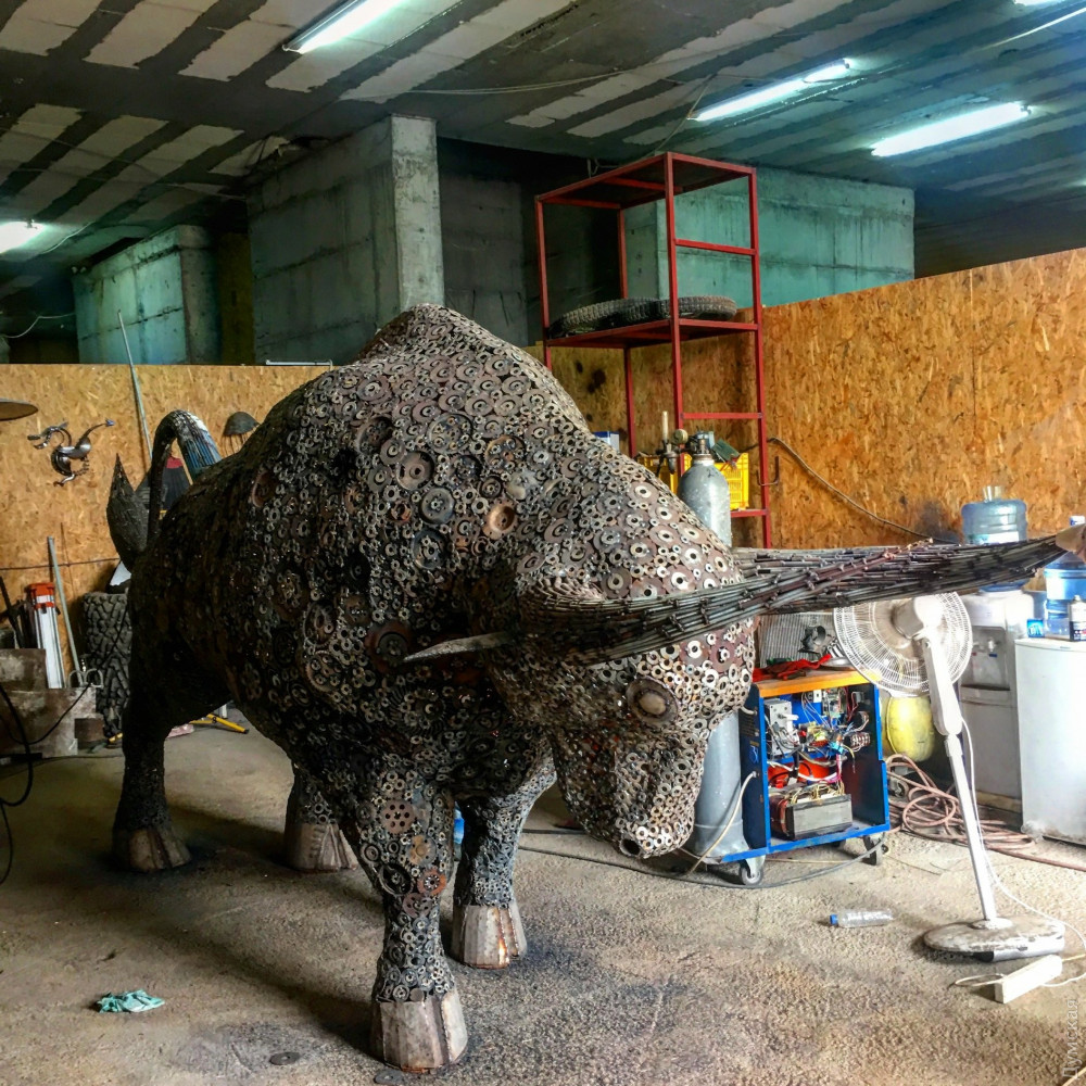 Автор одесской «руки Стива Джобса» создал двухтонного железного быка для производителей электрокаров на КипреПолноростовую статую быка сварил из металлических деталей известный одесский скульптор, автор памятника Стиву Джобсу на Новосельского Кирилл Максименко. Как рассказал мастер «Думской», изваяние он соорудил на Кипре. Стальное животное будет установлено в северной, турецкой, части острова, на территории Ближневосточного университета. «Вуз сейчас строит завод по производству электромобилей кипрской марки Gunsel (создана основателем университета Суатом Гюнселем, — Ред.), а бык - это символ электрокара, — говорит Кирилл. — Киприоты нашли меня благодаря руке Джобса. Я работаю тут уже год, но скульптурой занимаюсь мало. Сделал несколько работ для автомузея, мне предложили рассказывать студентам, как я делаю скульптуры из металлолома. Бык будет готов через неделю-две. Осталось помыть и покрыть лаком. Открытие, скорее всего, будет позже, когда закончат завод». По словам нашего земляка, статуя весит две тонны. Самым сложным было собрать мелкие крепежные изделия. В конце работы пришлось докупать новые шайбы. СМЕРТЬ РОСІЙСЬКИМ ОКУПАНТАМ! Помітили помилку? Виділяйте слова з помилкою та натискайте control-enter |